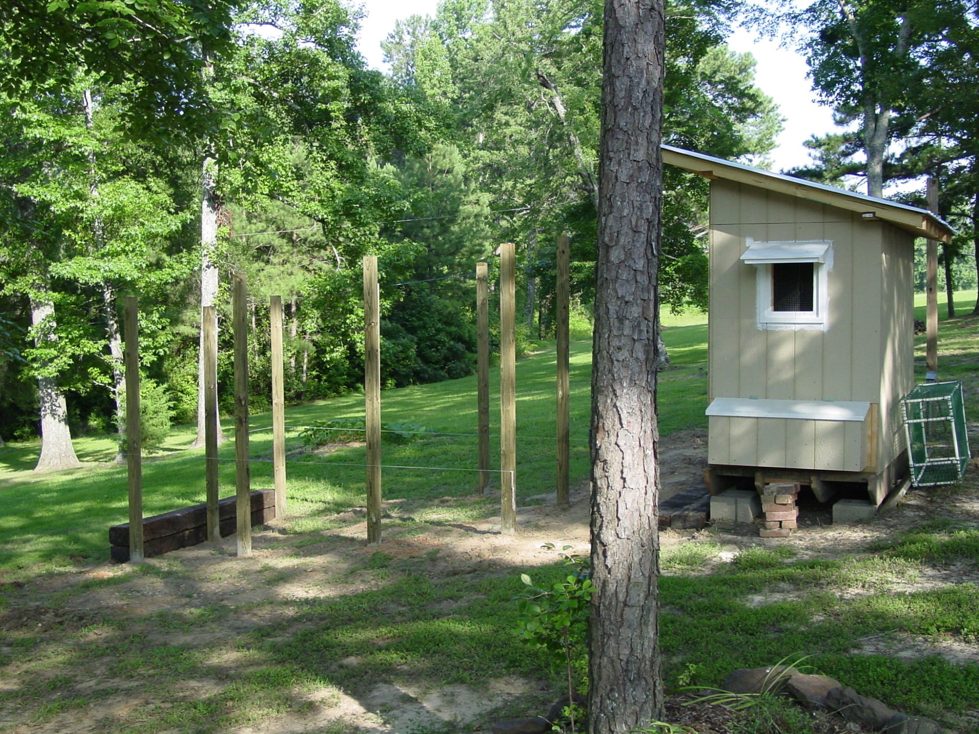 Finally got started on the run. It will be slightly over 8' x 12', and will be connected to the coop by a "covered bridge." As you can see in the photo, it's on a slope, but I am planning to level it out and fill it with sand. Still have lots to do on it and the coop.