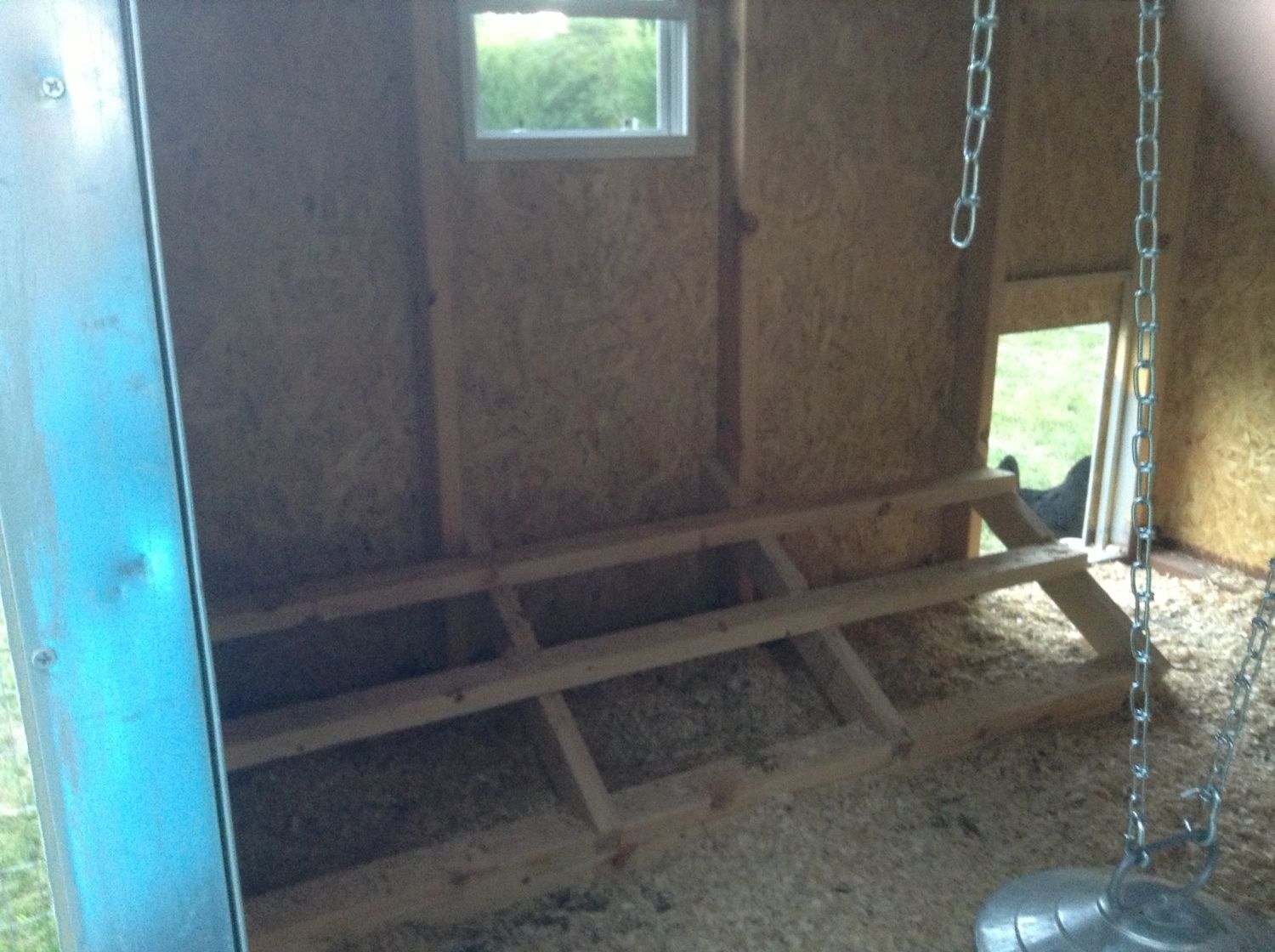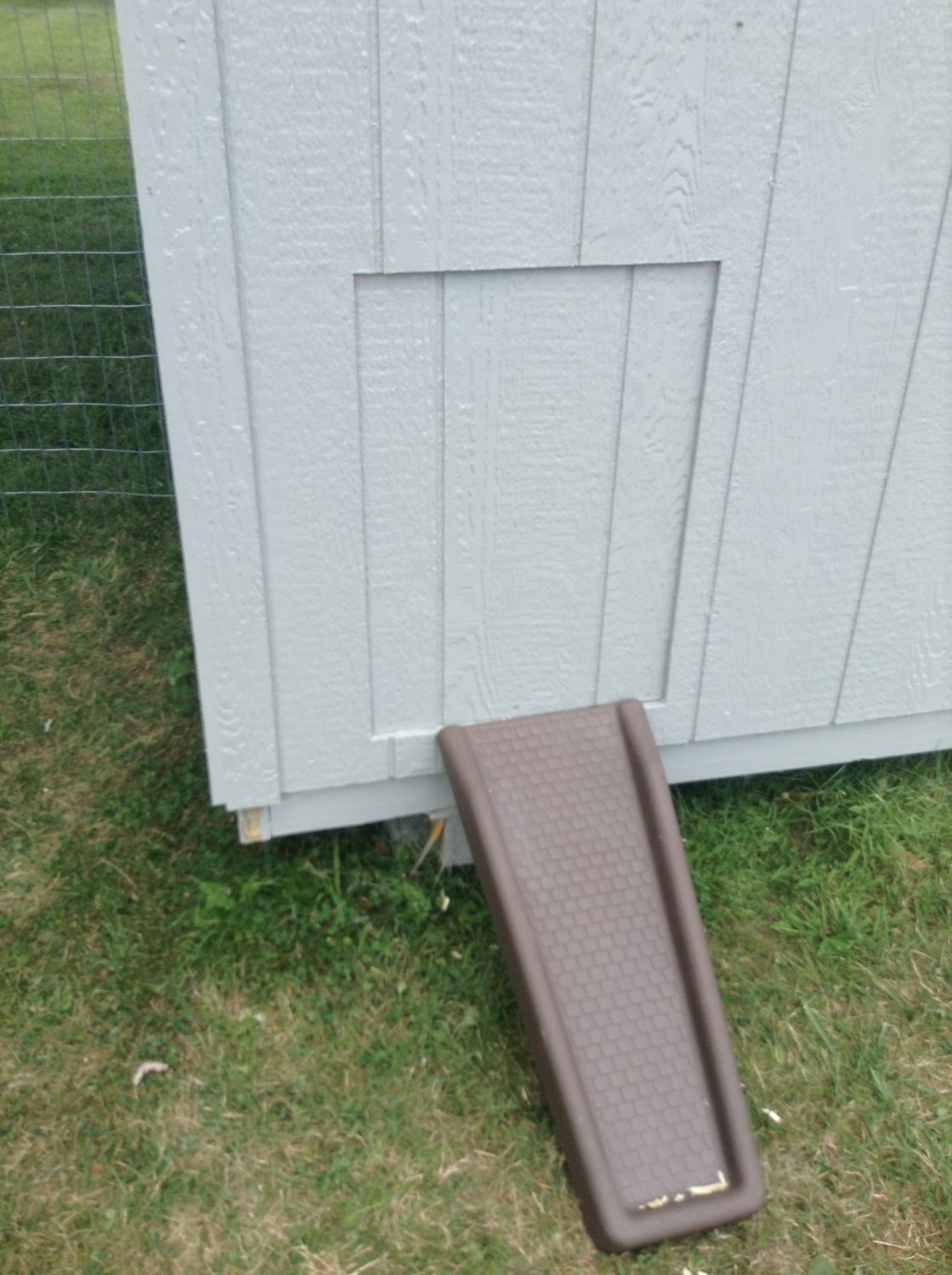 the chicken door, we tried a ramp idea, it was too slick, worked more like a slide!