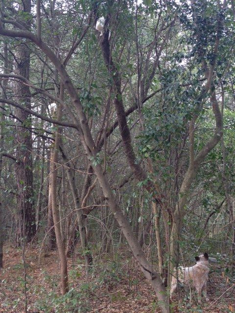 The chooks are in a all sides covered in hardware cloth coop right now so they are safe but Zeta went after these two without being told! I was so proud of her. She kept them in those two trees until DH took care of them. she never left her post.