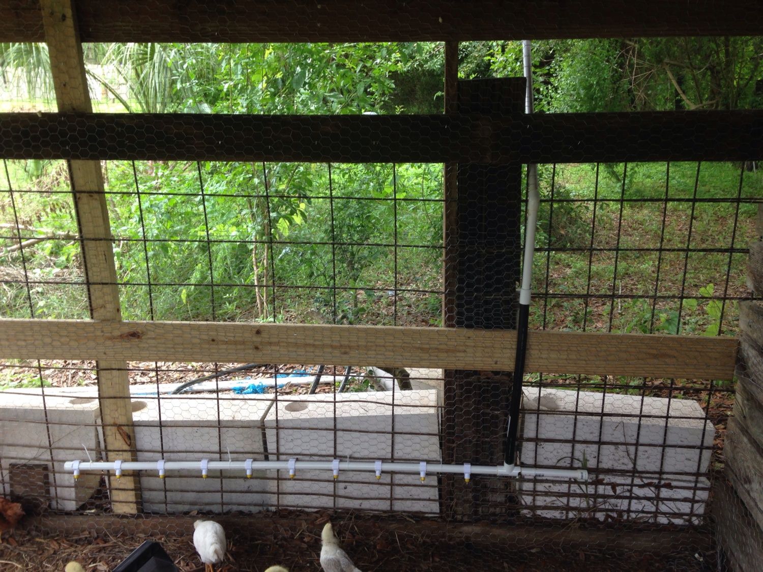 *I also used a 24" rubber pipe towards the bottoms with hopes that I could bend it as the chicks grow to raise it up without having to cut the pipes and add a connection, don't know if that will actually work...