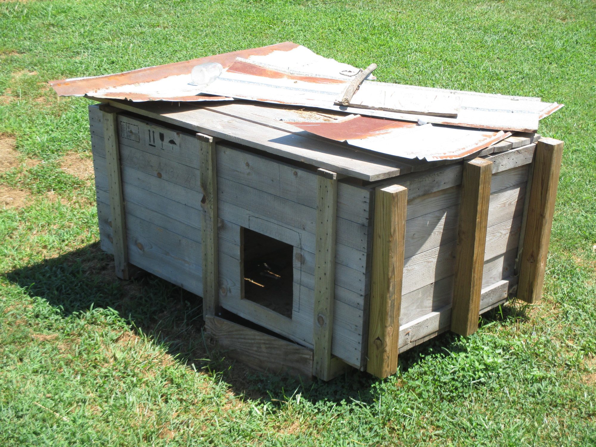 The top is just a loose lid. Take it off, cover the current top with wire and flip it over onto a 4x4 stand. Cut the wood out between the supports, cover with wire. Add two doors to one side (have it propped up slightly on one side so the eggs roll forward). The plus side is that I could then fence off the 4x4 frame down below for a grow out pen eventually.