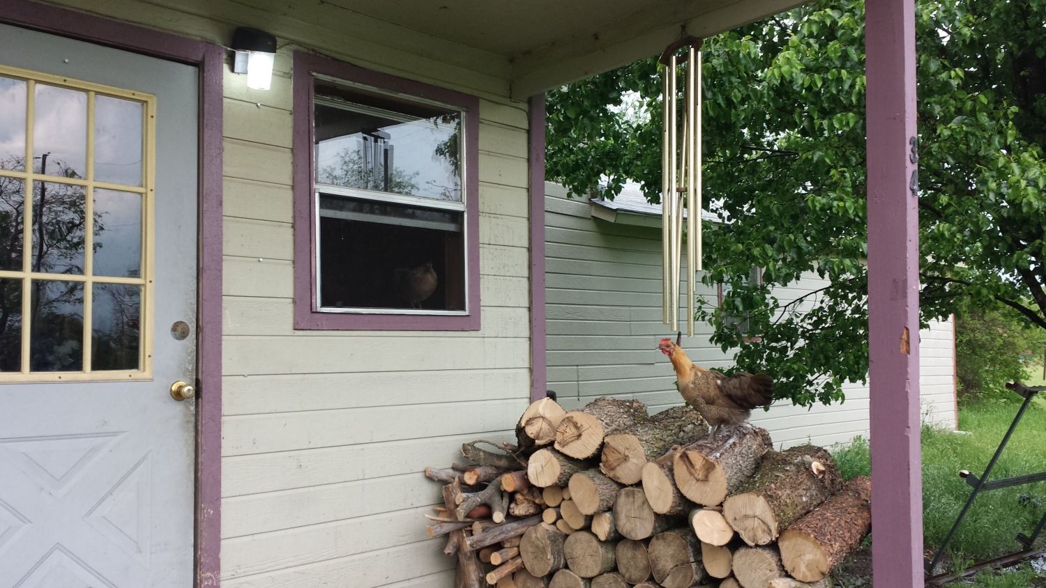 he went in. I cant believe he didnt see her. Dont ask me how.. then he came out.. And idk if she was so frightened by him coming in or what. Because all of a sudden she came flying out of the house and onto my husbands shoulder. " save me daddy" she likes him more than me I hate to admit. I wish I werent in zoom mode whenever I was taking these pics of boss man, I could have got him chasing her.