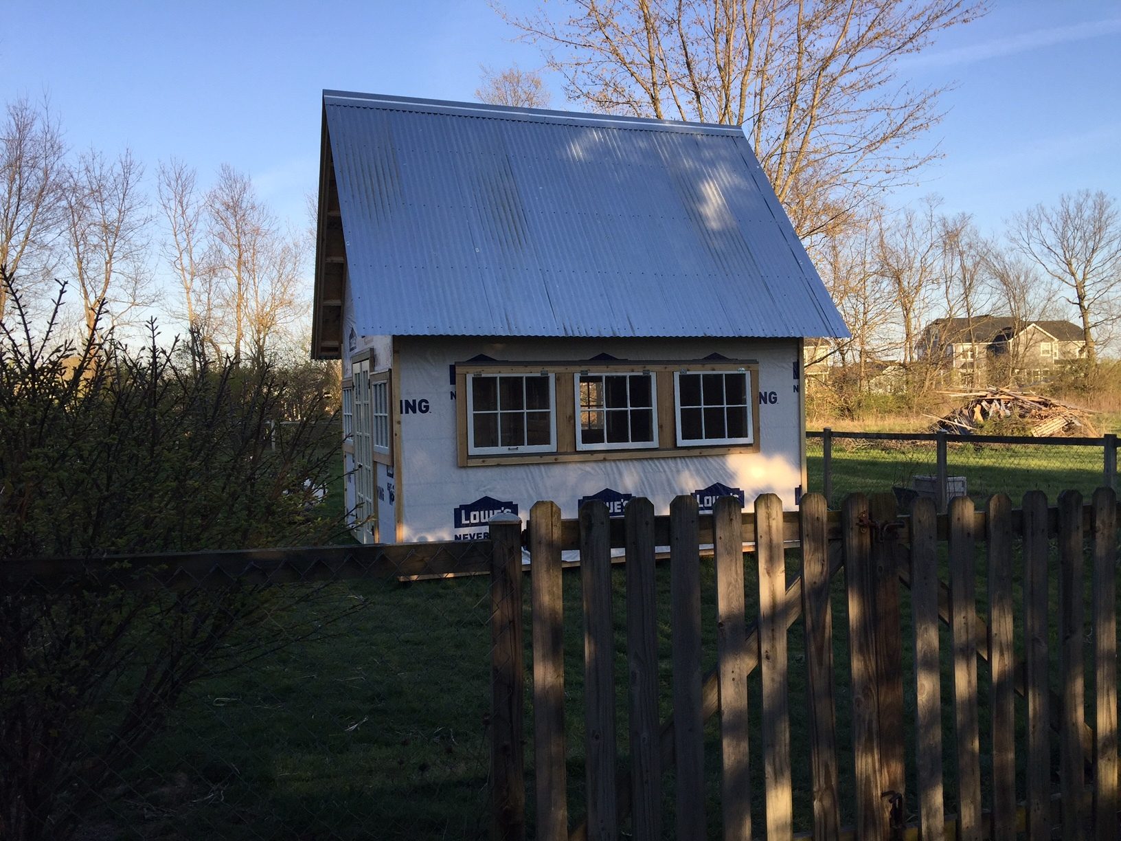 Well, I guess there won't be any more updates until I get busy and start my jobs. I've been thinking that I should start with a wire apron around the foundation. I wouldn't put it past those chickens of mine to start hiding their eggs under there. There were two particularly naughty hens who used to jump the fence and lay their eggs underneath my siding pile. Since I clipped their wings and we moved the wood, they might be looking for a new hideout.
