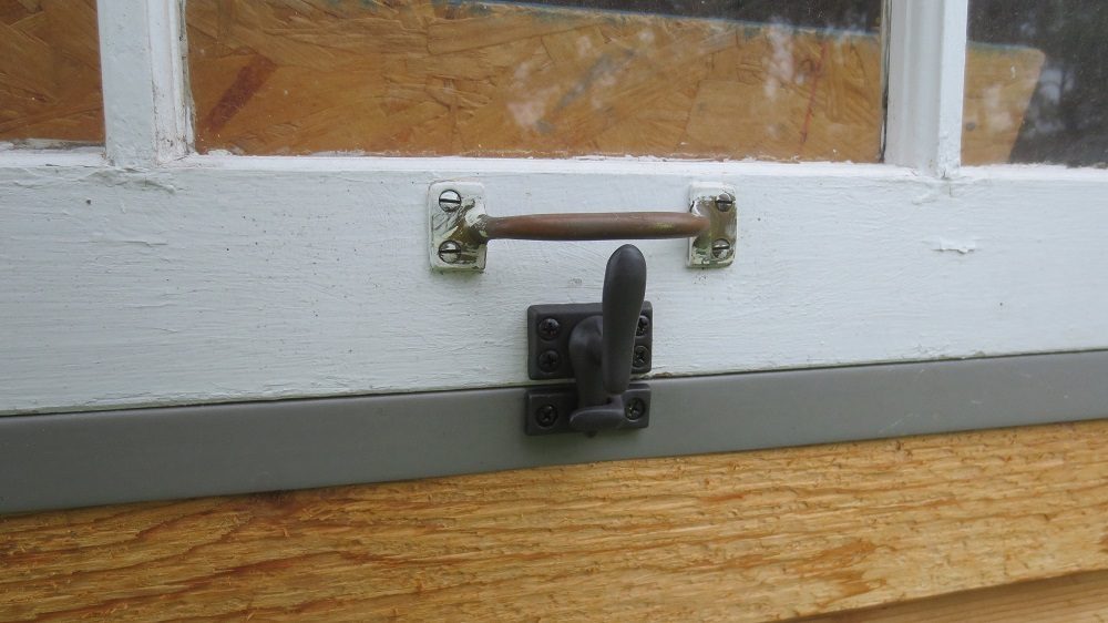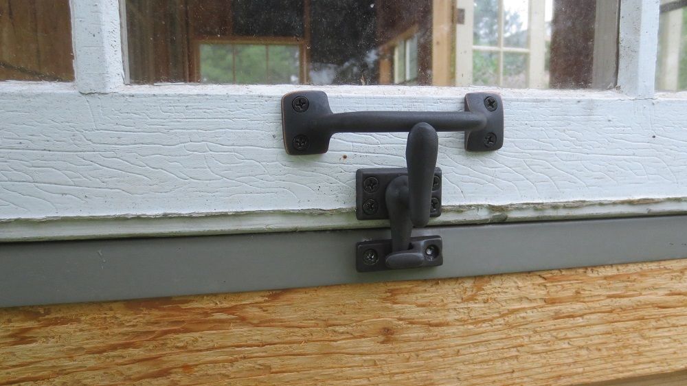 There were a couple of original window locks that had to be removed to make the windows fit the openings, so I reused those, but then I had to buy latches for the rest of the windows. I liked the look of these casement window latches: