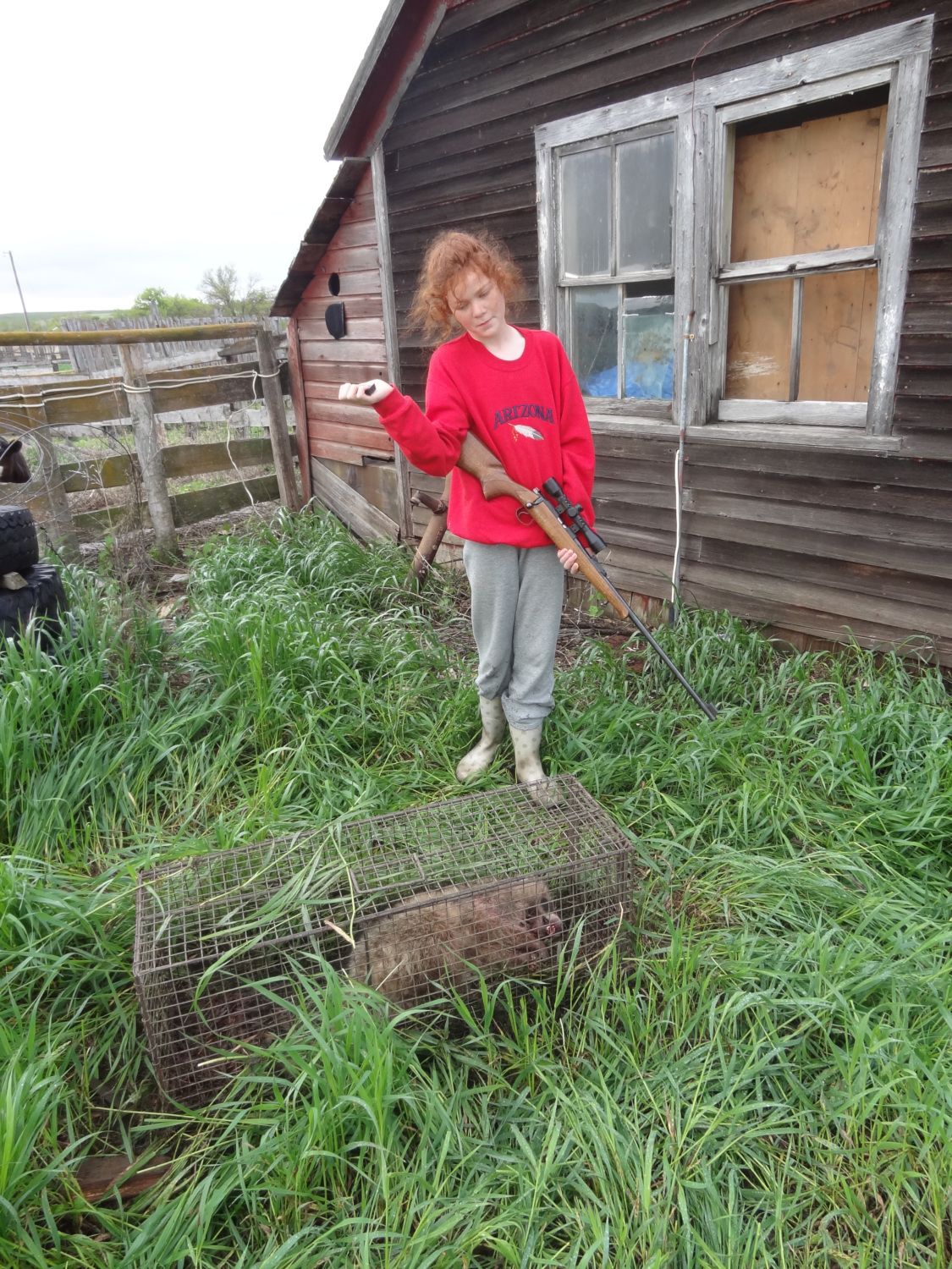 We built them a pen out at the ranch, but we still had to keep them in the machine shed since the old grainery was not fixed up yet.