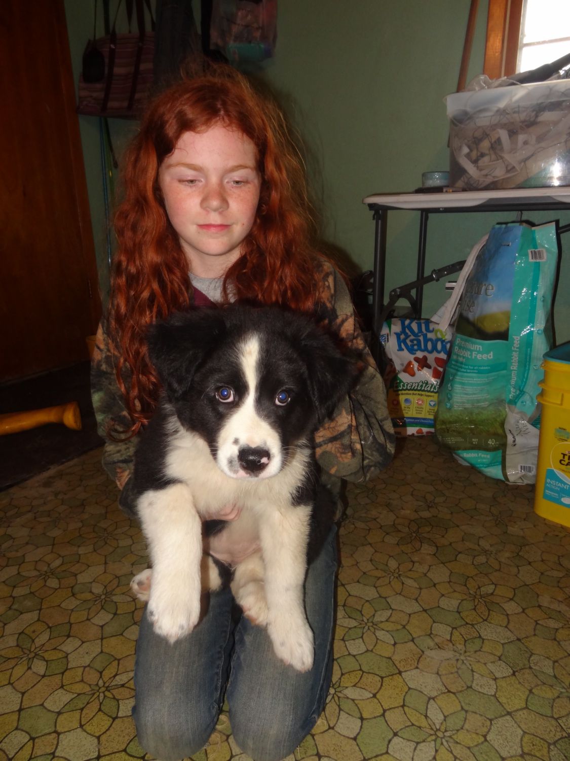 Our 1/2 Great Pyrenees was still to young to go outside yet to keep the coons away.