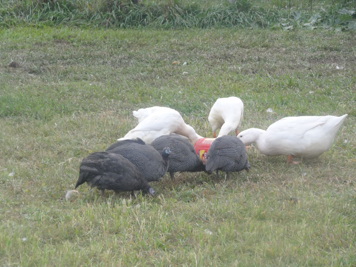 In September I went to a sale and bought 5 guineas, 2 indian runner ducks, 1 indian runner drake, 1 catalana hen, 1 bantam easter egger hen, 1 rhode island red hen, and 1 unkown rooster.