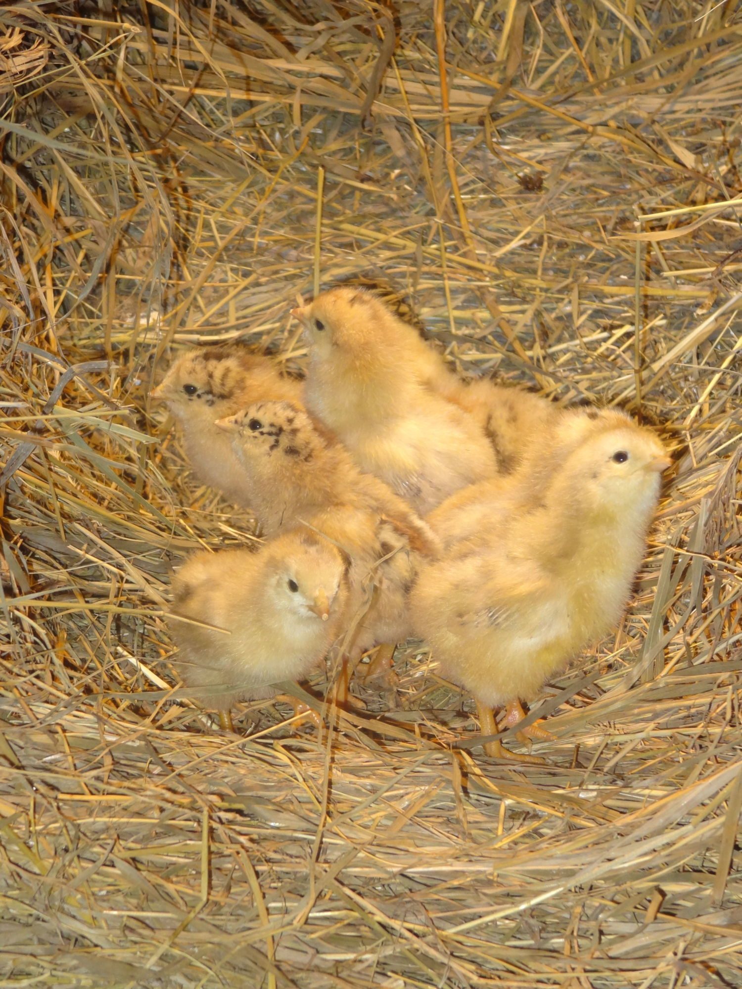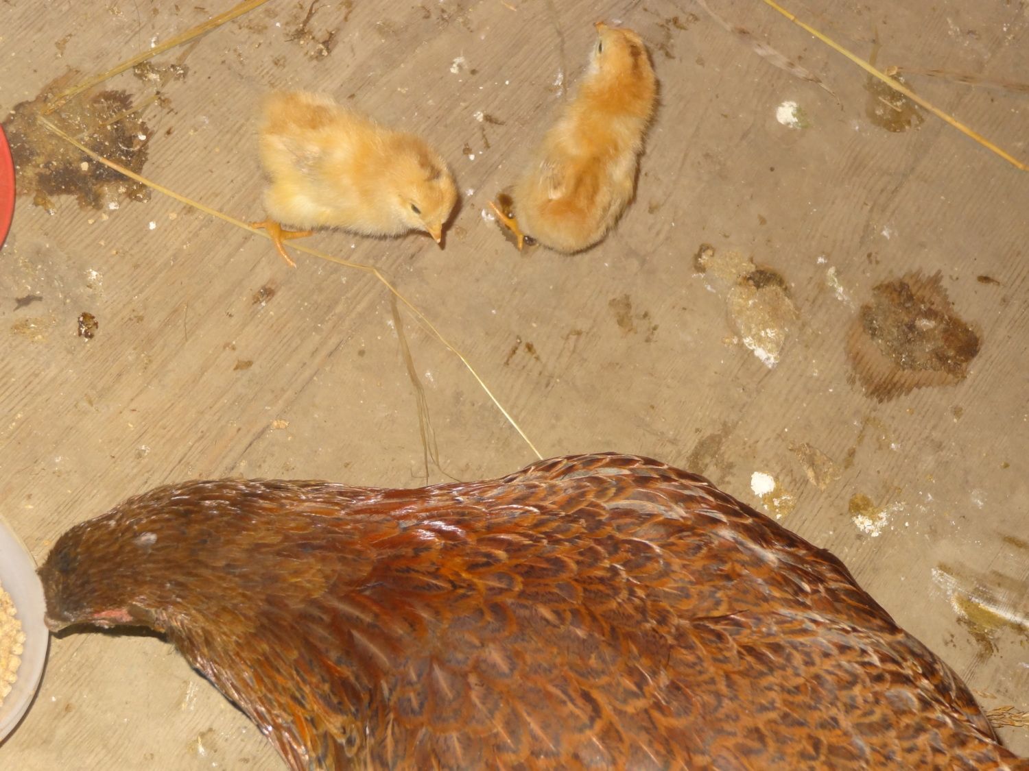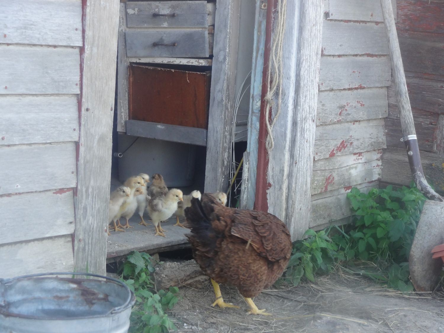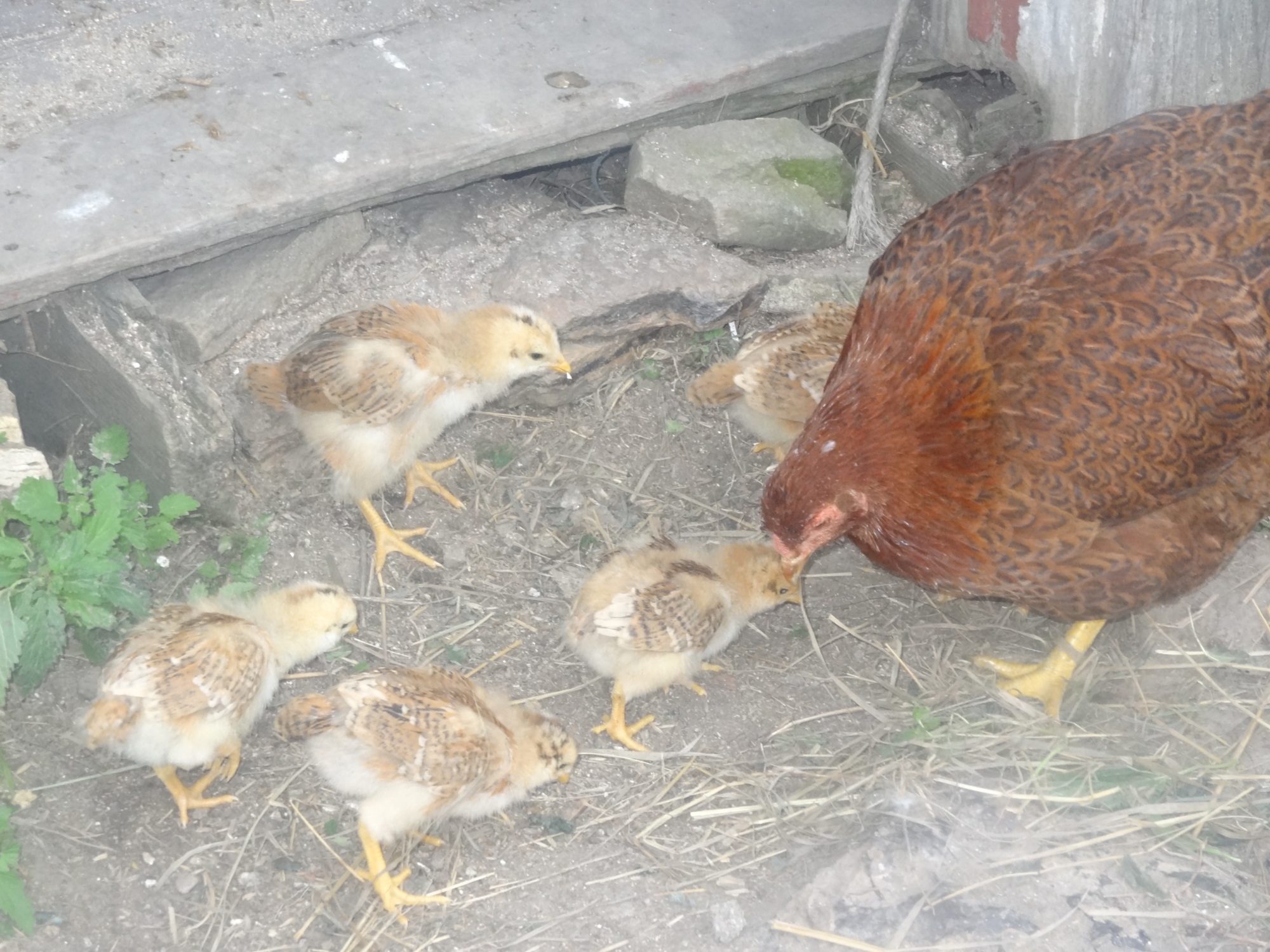 I thought one of my partridge chanteclers, Delilah, was killed by a coon or hawk, but instead in September I heard peeping under a wheelbarrow!! Ralph has heirs!