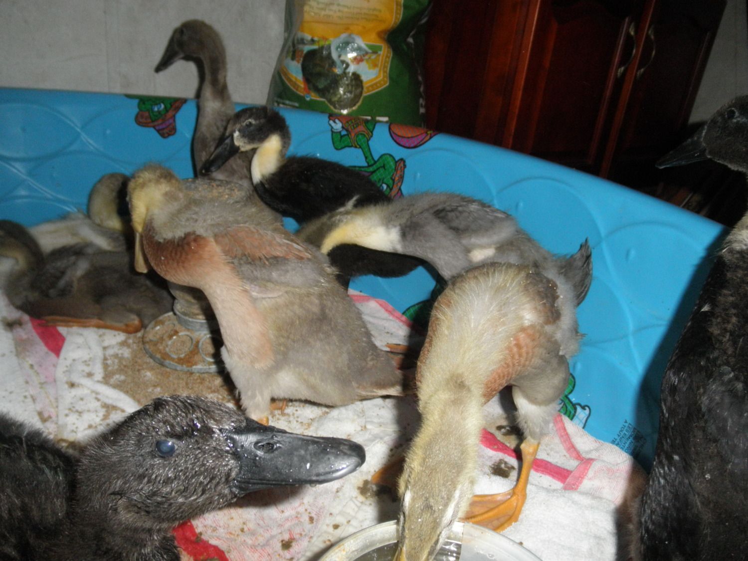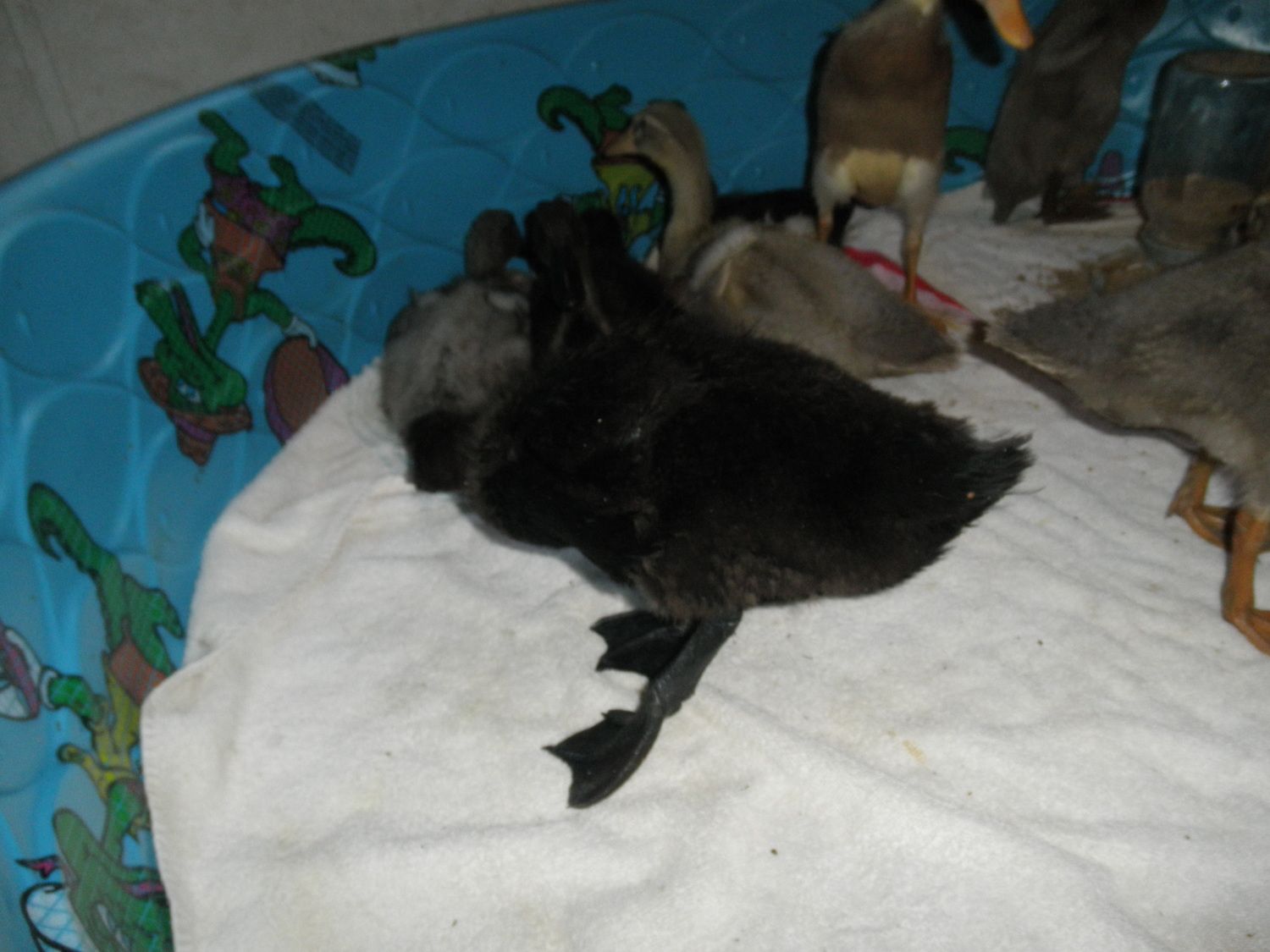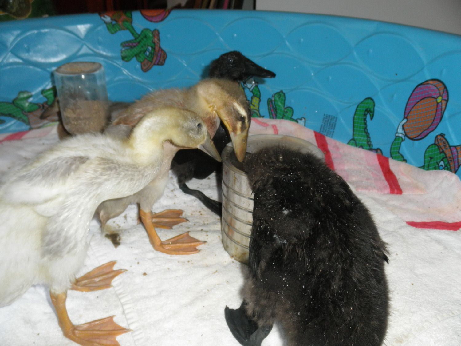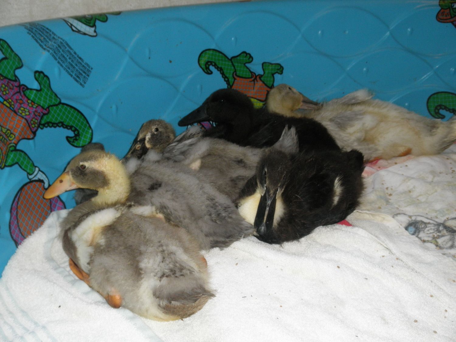 The feathers they are getting in are gorgeous!I love that one with the gray speckled bill! Very cute ducklings.![]()