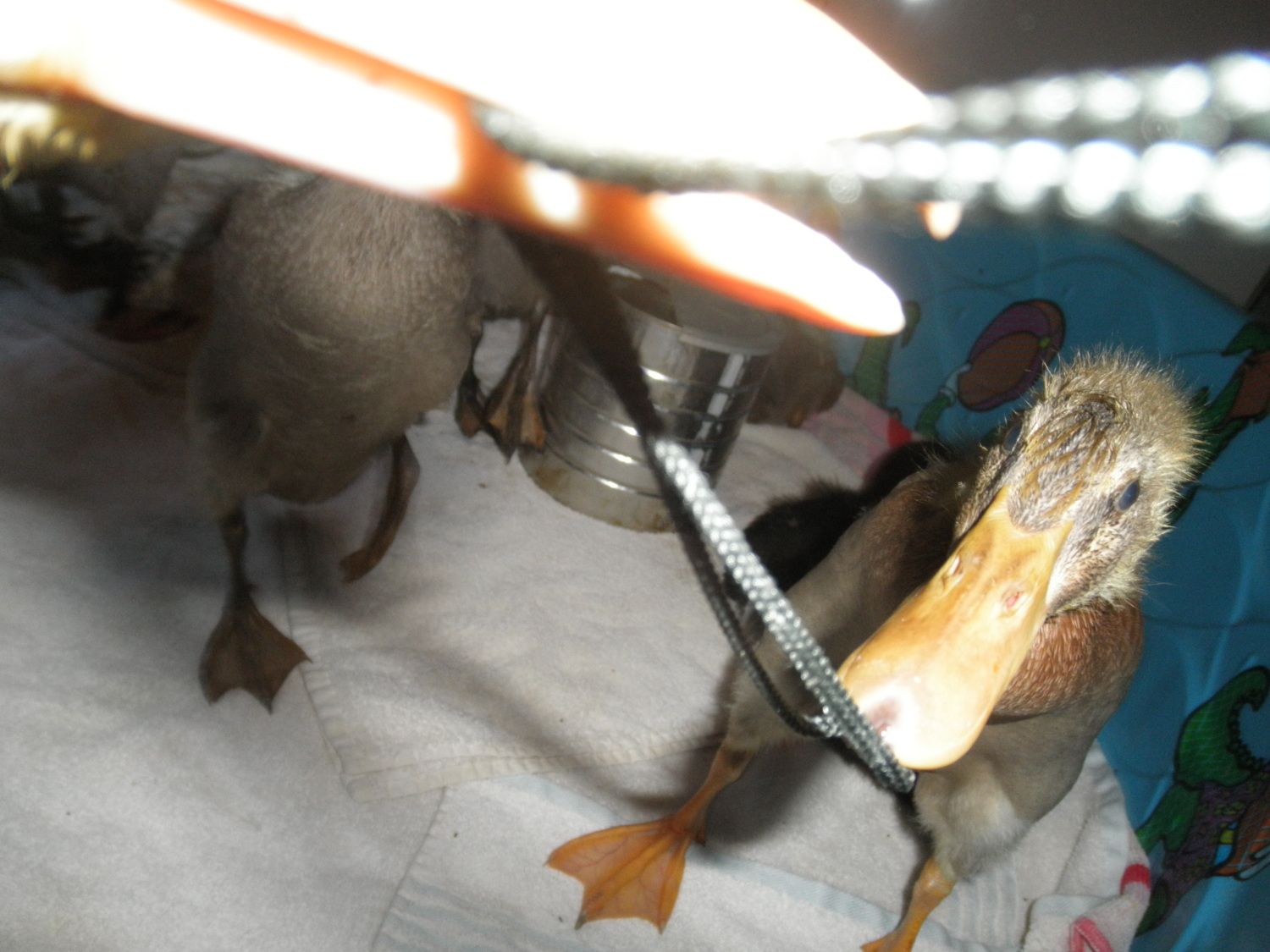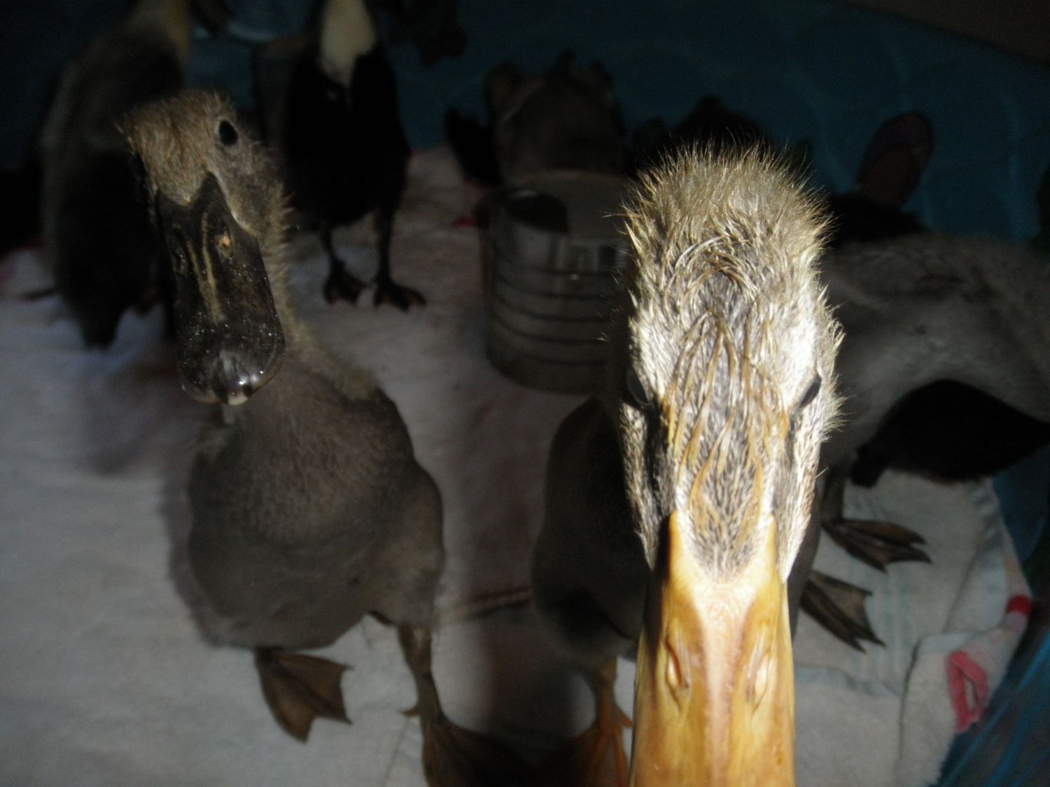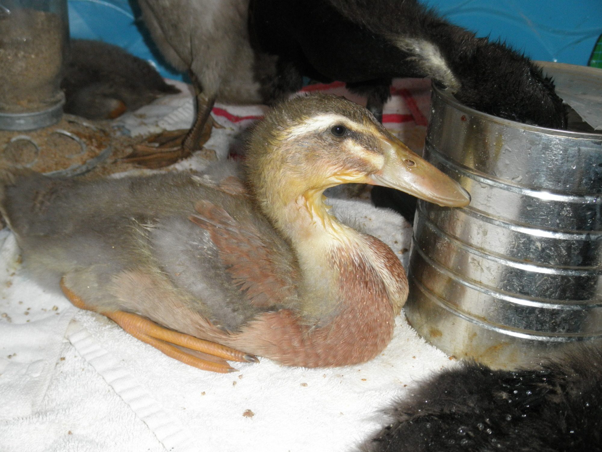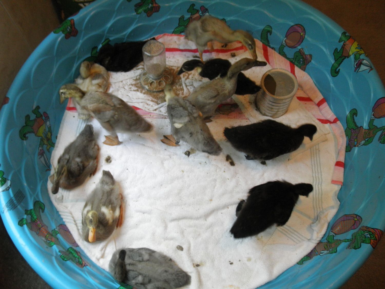 The feathers they are getting in are gorgeous!I love that one with the gray speckled bill! Very cute ducklings.![]()