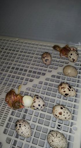 This is my very first hatching, I'm so excited! Two popped out about 20 mins after pipping, the others have pipped but are all taking their time. :D Looks like 100% fertility, and these are shipped eggs. :D Does anyone have any tips on quails when they first hatch?