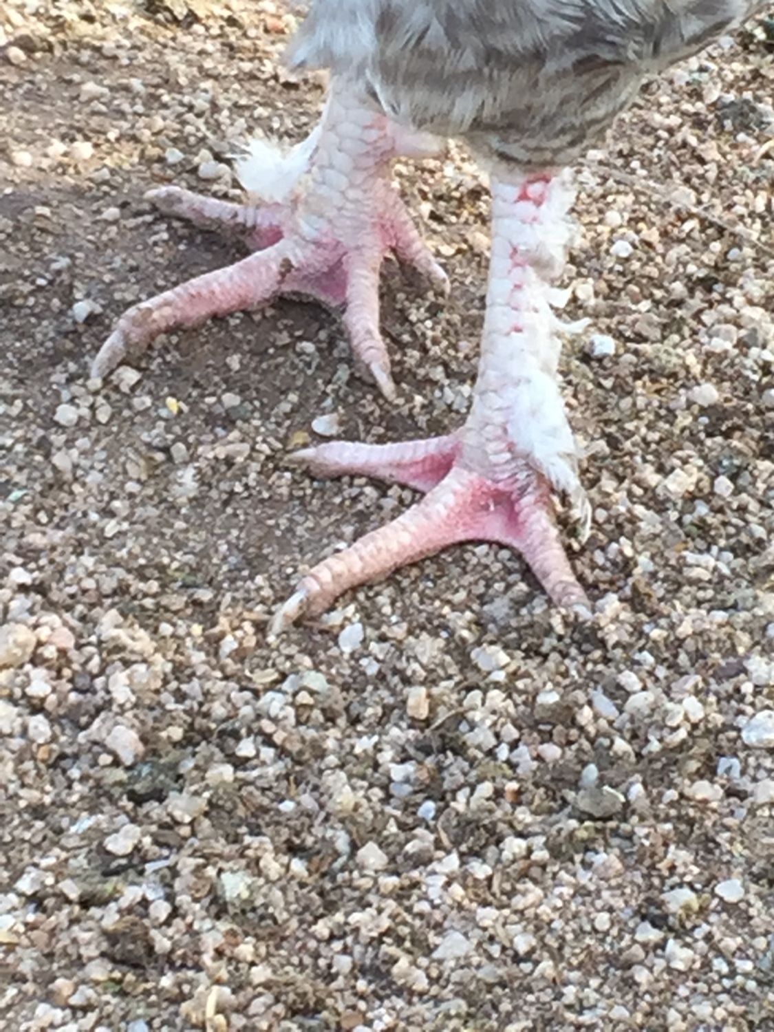 He is a french copper maran and the girls that I have from the same breed, have white legs, nothing as pink as these legs>