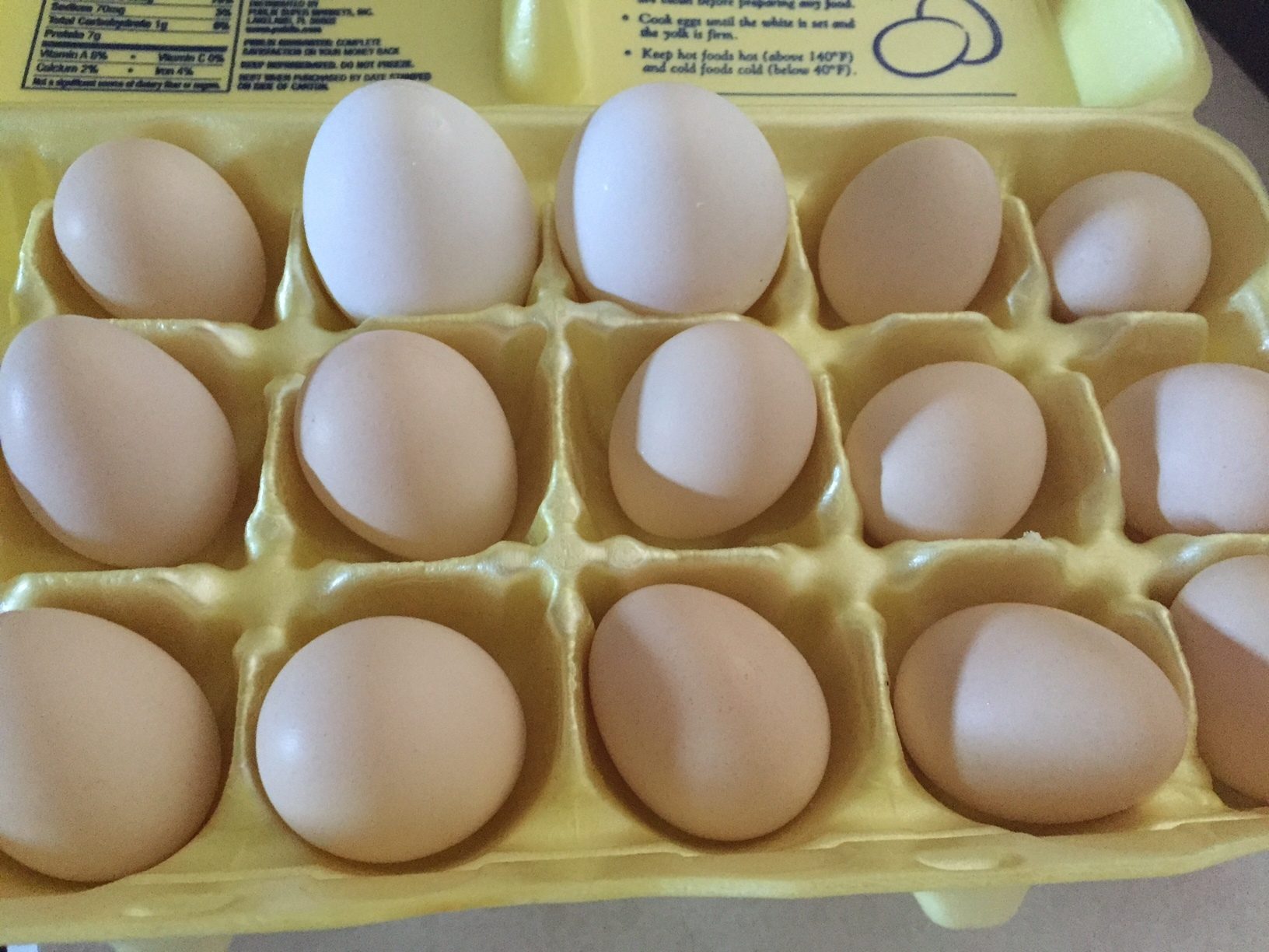 Somebody was asking about Silkie eggs. Here's our Silkie eggs. I put 2 extra large white eggs from the grocery with the light brown silkie eggs for size comparison.