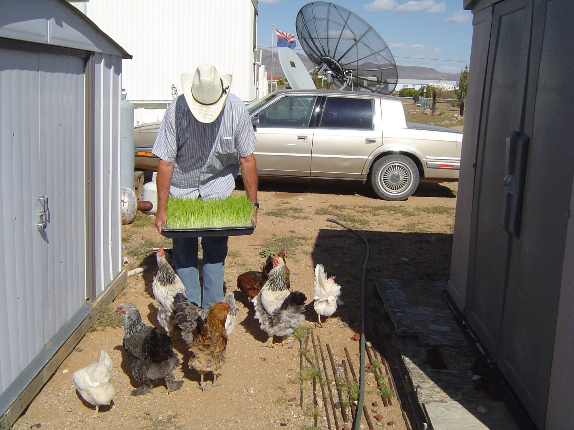Wow, this is a huge help! Thank you so much for taking the time to share all this!! So, my 4.5 pound guess was way off I will start with a pound of fodder per bird and see how that goes. One more question...did you say you feed them this in the morning and at night? So half a tray in the morning and half at night? I know I'm probably asking some silly questions but I have a hard time diving into a project until I have a really good idea of what I'm doing
