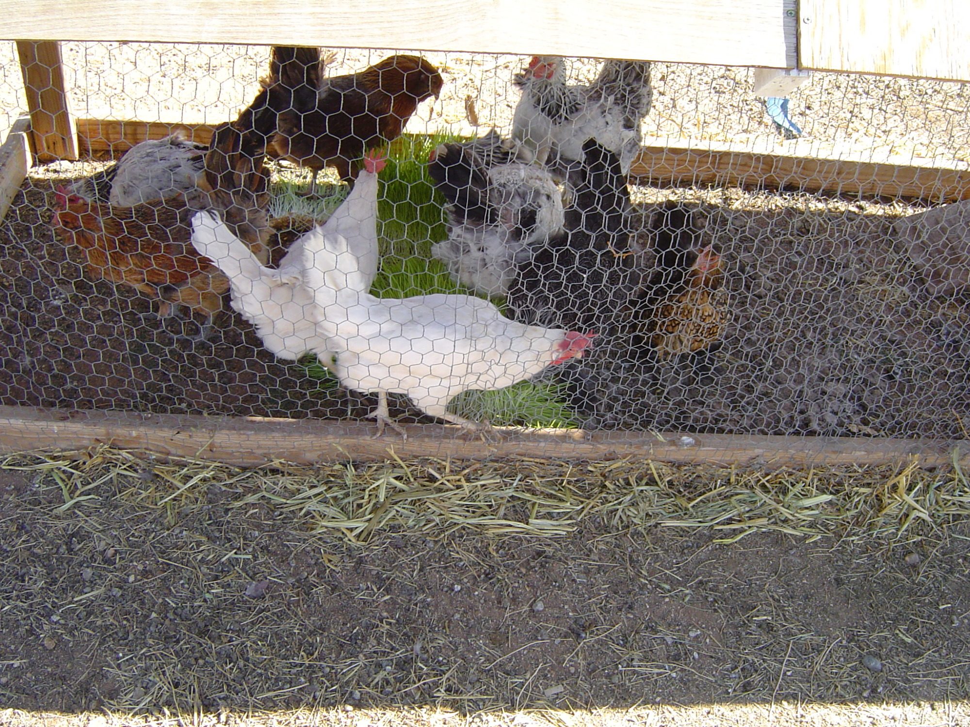 As for how often I feed the fodder, it is ONCE a day, in the evening, normally an hour or so before dusk (use your imagination). I don't want them going to bed with a full tummy, and they get locked down when I feed the fodder, it makes it so much easier to round them all up after a day of free ranging, and I close the door on the run so they are safe and "tucked in" all at the same time. This is also when I collect eggs, and btw, egg production has doubled since I started using fodder, for whatever reason.