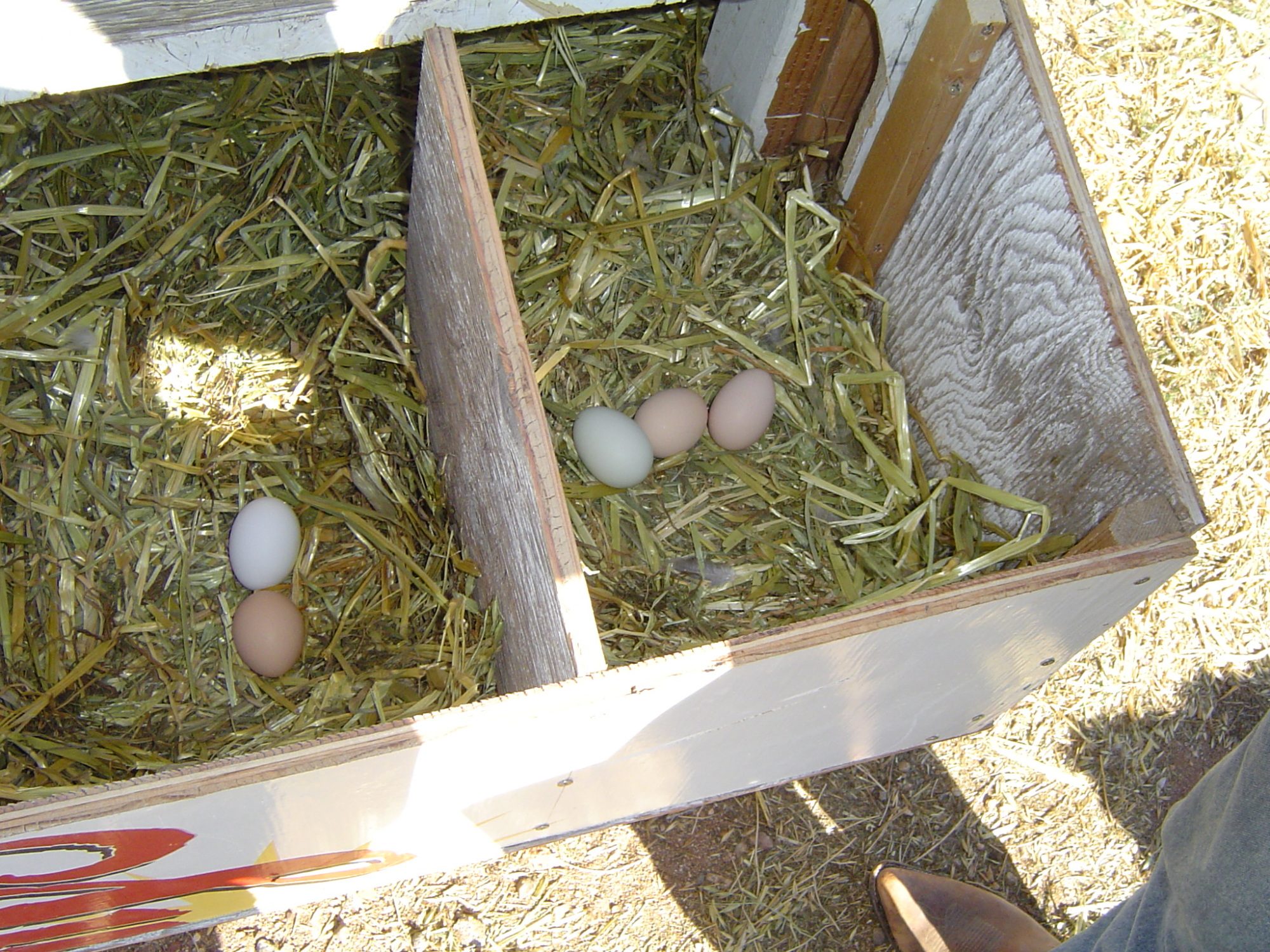 Although there are only five eggs here now, I had already picked up three eggs earlier, so ... eight eggs for the day, from nine ladies.