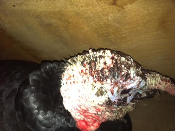 Last night we noticed black marks on the head of our 2 turkeys - there are more on one than the other.