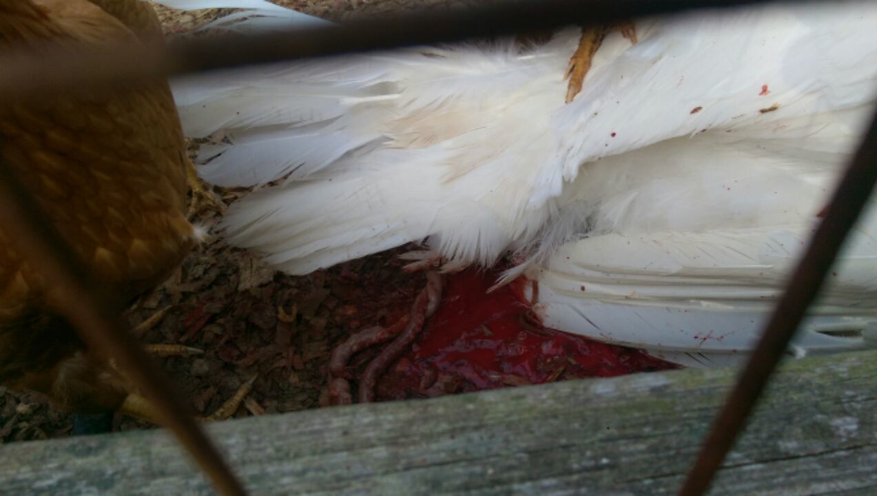 Why did this happen? She weighed approx. 50 lbs, her intestines were lying in the run almost 3-4 feet of them. It was heartbreaking that she had to be put down. The chickens were pecking at them, too. I'm worried it may have been an infection or something and I don't want the chickens to be affected. Has anyone seen this before?