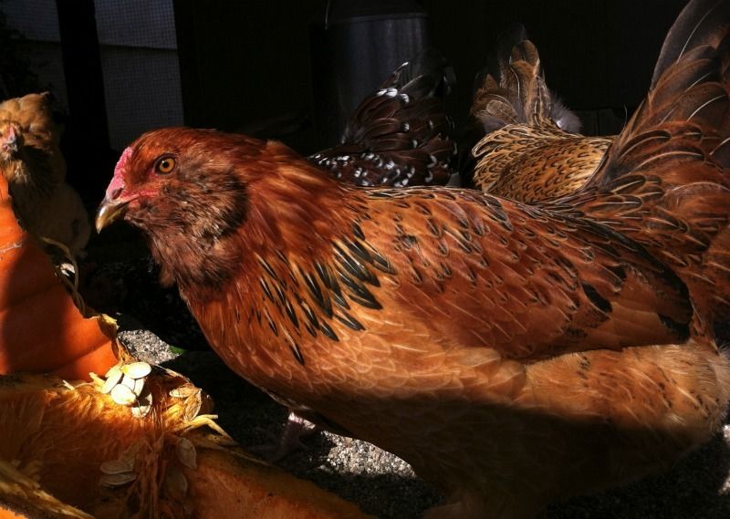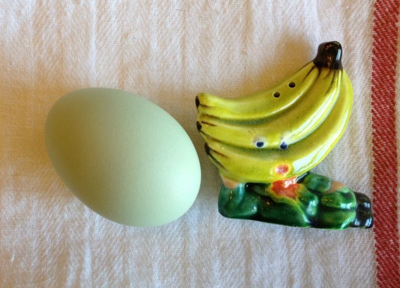 Oh my. Thanks for indulging me. What an exciting day it is. The sky is blue, the air is crisp and my beau found a blue-green egg where the girls like to hop inside a half-whiskey barrel. One of the three Easter Eggers is the culprit. The girls are 25 weeks old. I suspect it was either Fig or Fern, as Piccadilly is still a bit smaller and her comb is not as red and is smaller too. Here is the egg and the Easter Eggers: