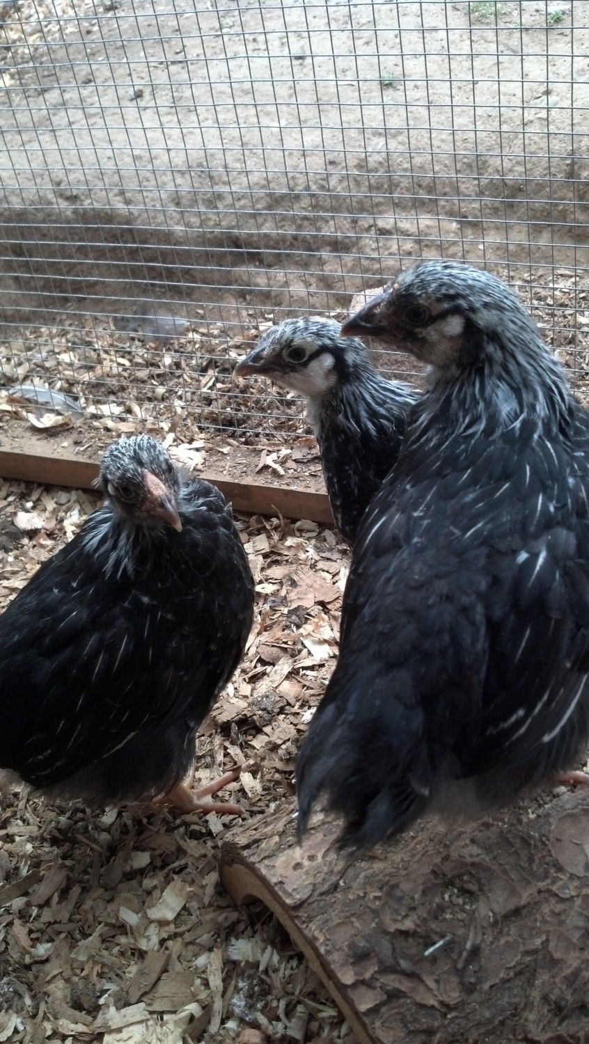 Weather is a lot better today. Moved the dottes out for the afternoon. Not to much longer and they'll be out permanently. I get excited every day I see new feather growth on them.