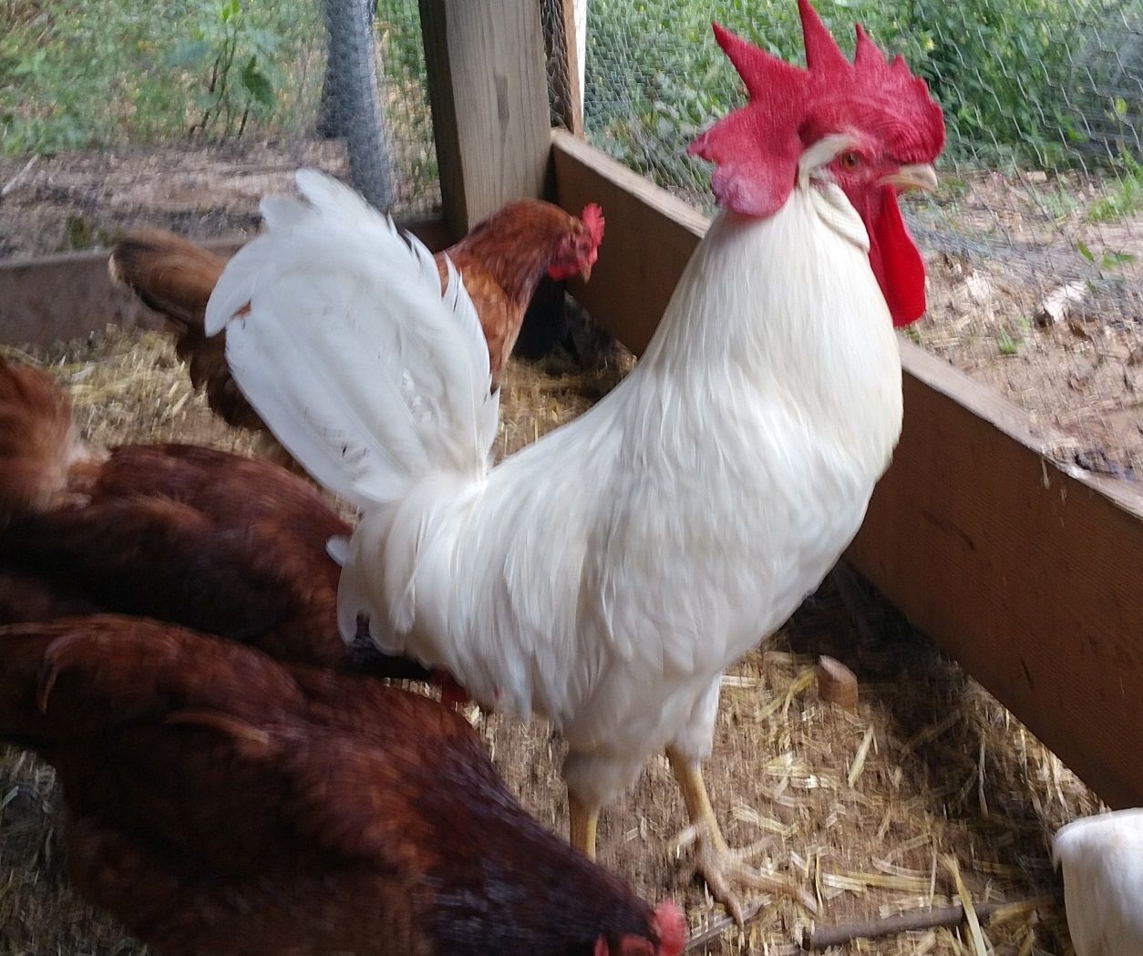 It's so difficult when you start to evaluate birds. As a newcomer, it is natural to concentrate on the obvious things -- the color, the comb, the beak, the feet, etc. Those are the "finishing details." They can't be ignored, but the basic structure of the bird is what is most important. If you look at your bird, it is primarily an upright bird. He is more vertical than horizontal. If you look at the picture of the ideal Leghorn, it is more of a horizontal bird. The back is horizontal, the wings are held horizontal, the tail extends back in a graceful arch, not jetting straight up at the base. If you're "building a bird," those details are like "framing a house." You can't put up the frame for a Tudor style house and end up with a Ranch style. It doesn't matter what kind of siding or doors or windows or paint you put on it. If you have a Tudor frame, you won't end up with a Ranch house. It's the same with birds. You've got to have the right frame first, then work on the finishing features.