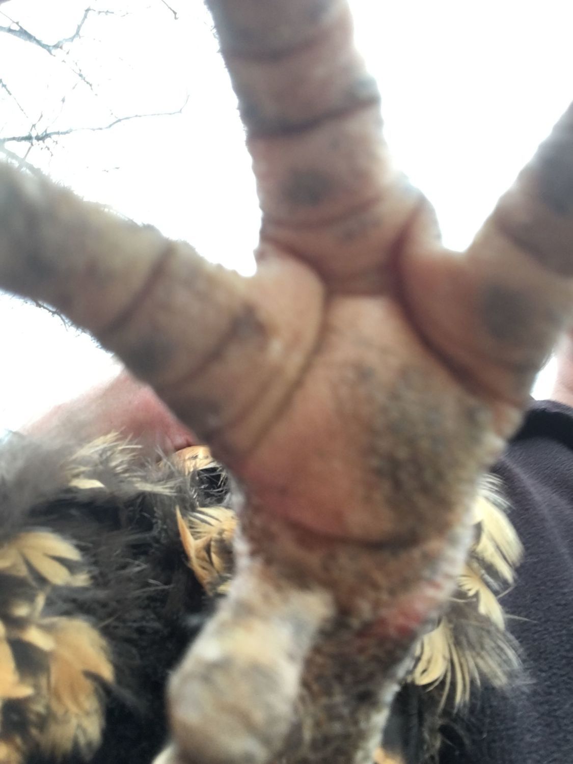 Has anyone had paralysis in the legs with Mycoplasma Synoviae? I have two roosters that have become sick. One had a swollen left foot pad and is better, but the second cannot walk. Thanks for your help.. I am new here. These roosters are 11 months old, no new introductions to my flock, they eat layer pellets and table scraps. I had them next to my chicken run living in my garden for several months to give my hens a break, but they slept in the coop with everyone at night and they are the only ones sick. NO respiratory symptoms. Rooster number 1 has improved but still limps, Rooster #2 after 8 days is still alert, eating/drinking on his own, but cannot walk. toes are not curled, feet are under him as though he is perching on the ground (legs are not paralyzed out in front or behind him), his feet grab my fingers but are too weak to stand on and he flaps his wings for balance. there is NO swelling in rooster #2 feet or legs. both have green formed poop. vet is coming next week for blood sample. picture attached is swollen foot pad on rooster #1.