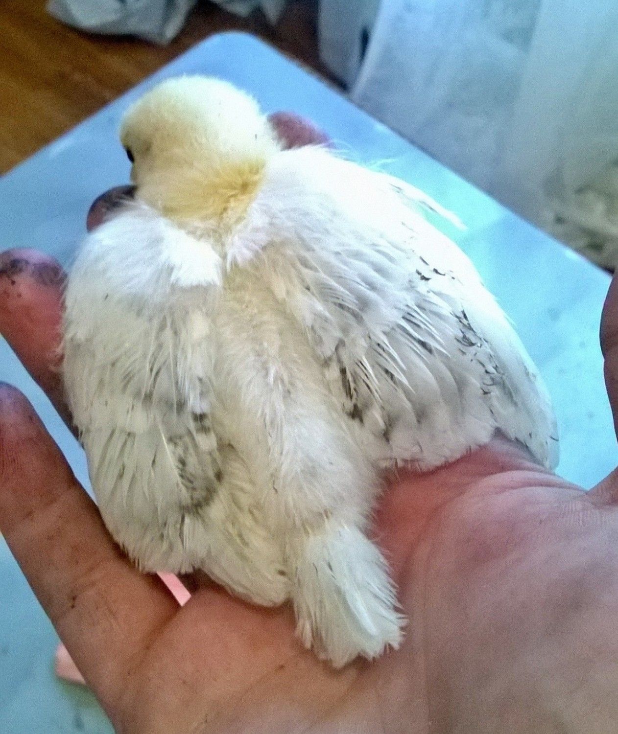 This one is the same size and shape as my cochins, fluffy feet and all, but brown, with bars on much firmer wing feathers (the blue's are so soft and stumpy in comparison) ??
