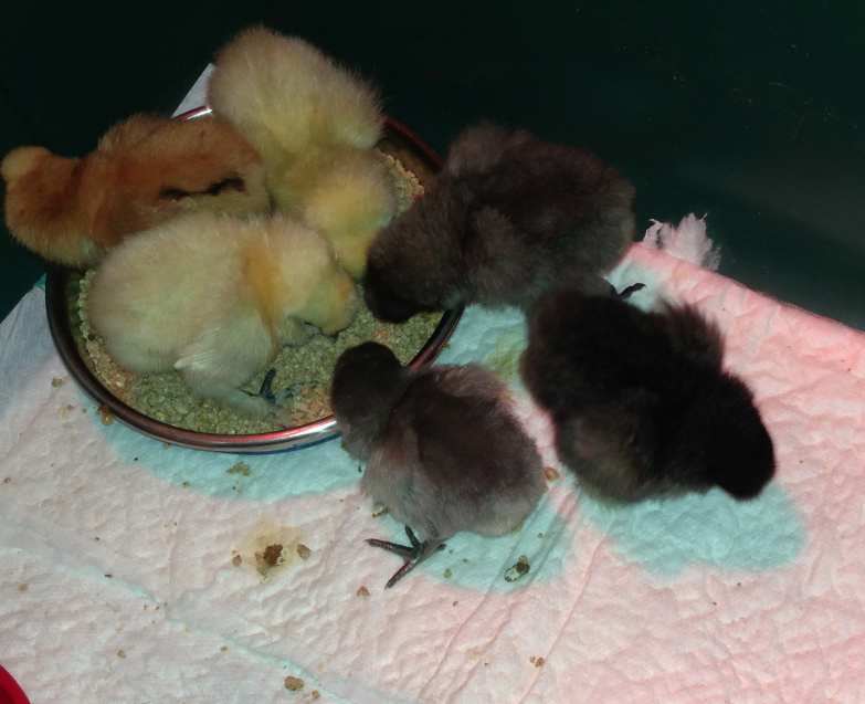 Hello, I just picked up 6 chicks from my local TSC and I thought 5 were silkies and one mystery chick, but turns out I have 2 mystery chicks because one of the vaulted head chicks doesn't have 5 toes and feathery legs. What do ya'll think? Polish? The grey one is a mystery, too. It's smaller than the silkies, too... any guesses?
