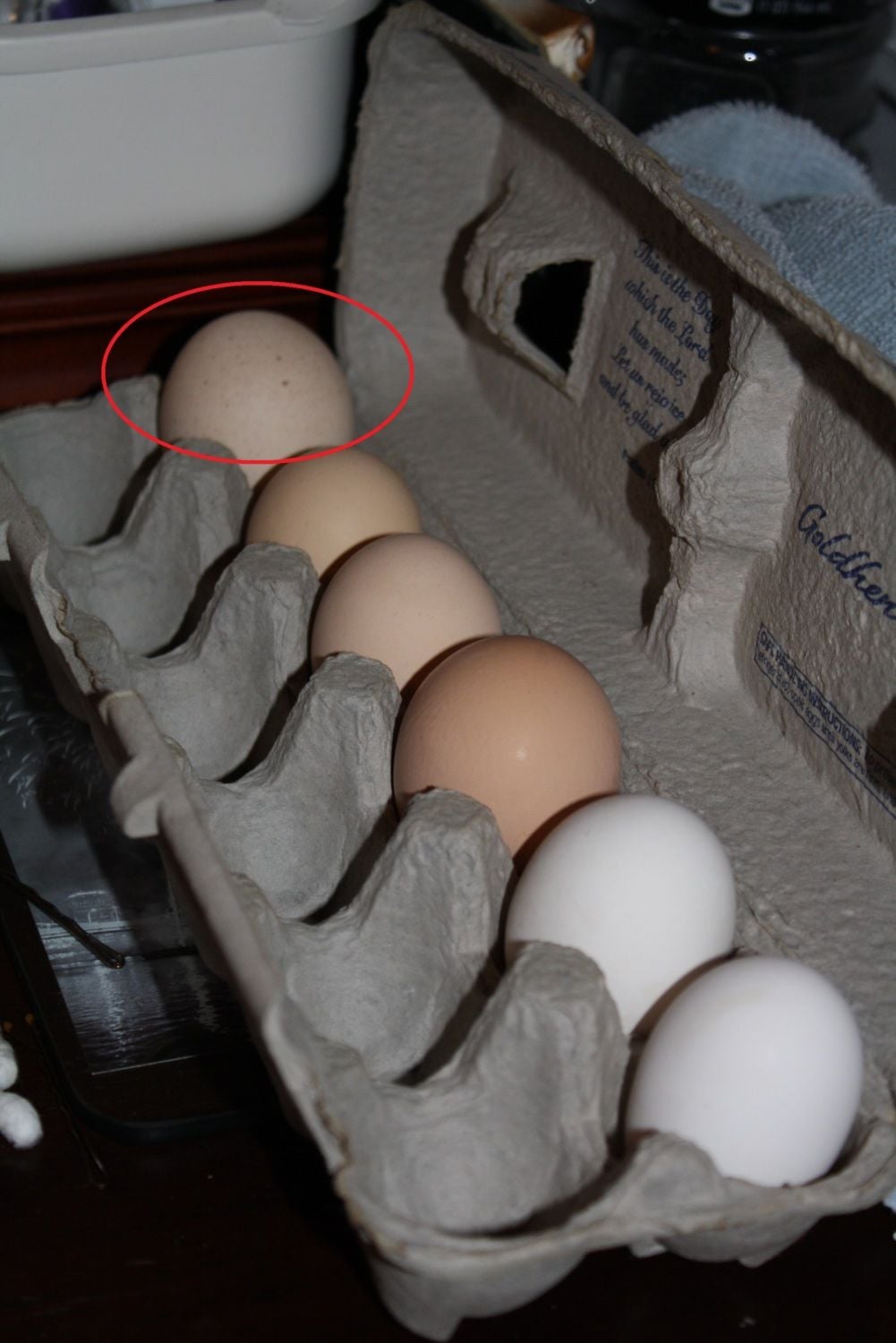 The mystery egg is in the back of the egg carton