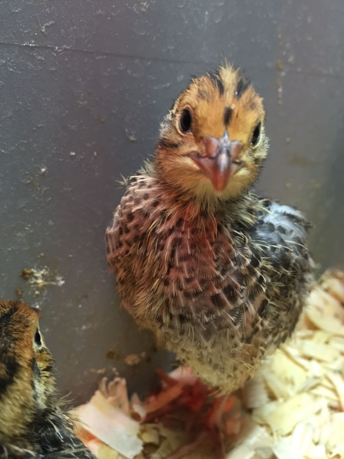 Hello! I am new to raising quail and have some chicks that I am trying to identify- they are brown with white, but don't appear to be a white-winged pharaoh or tuxedo (the chest is completely speckled).