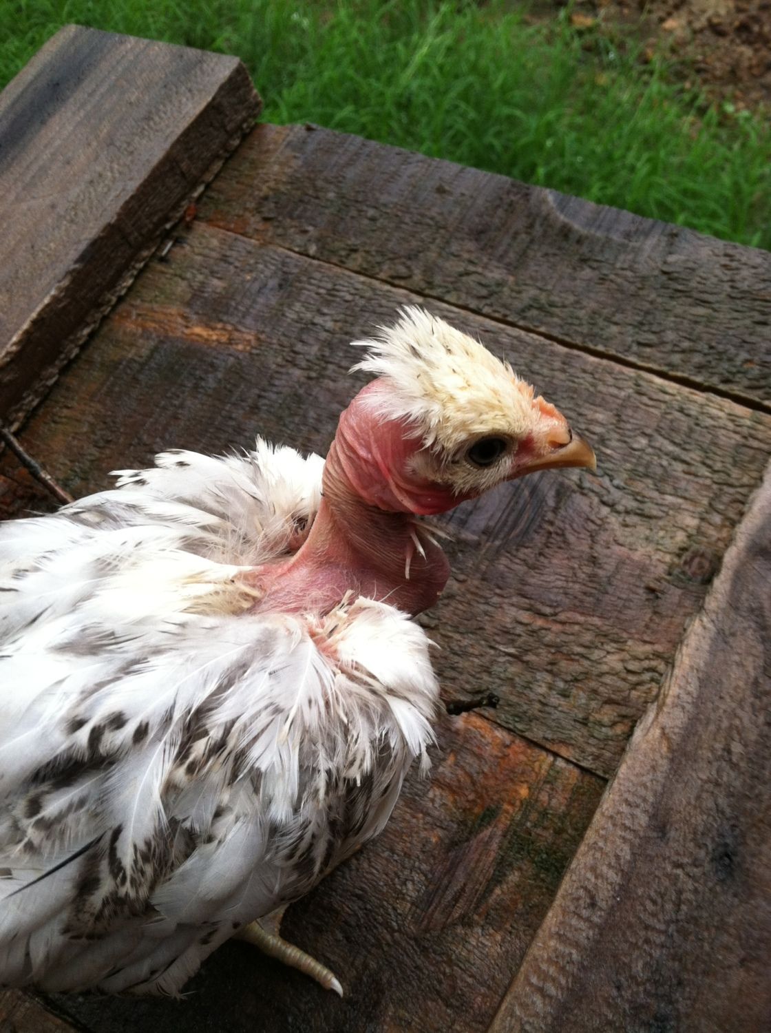 what comb does that blue have? if pea, then she could be single dose NN.. the blue could have come from the white hen, just couldn't her genetic color(s) due to the white gene masking everything else she has.