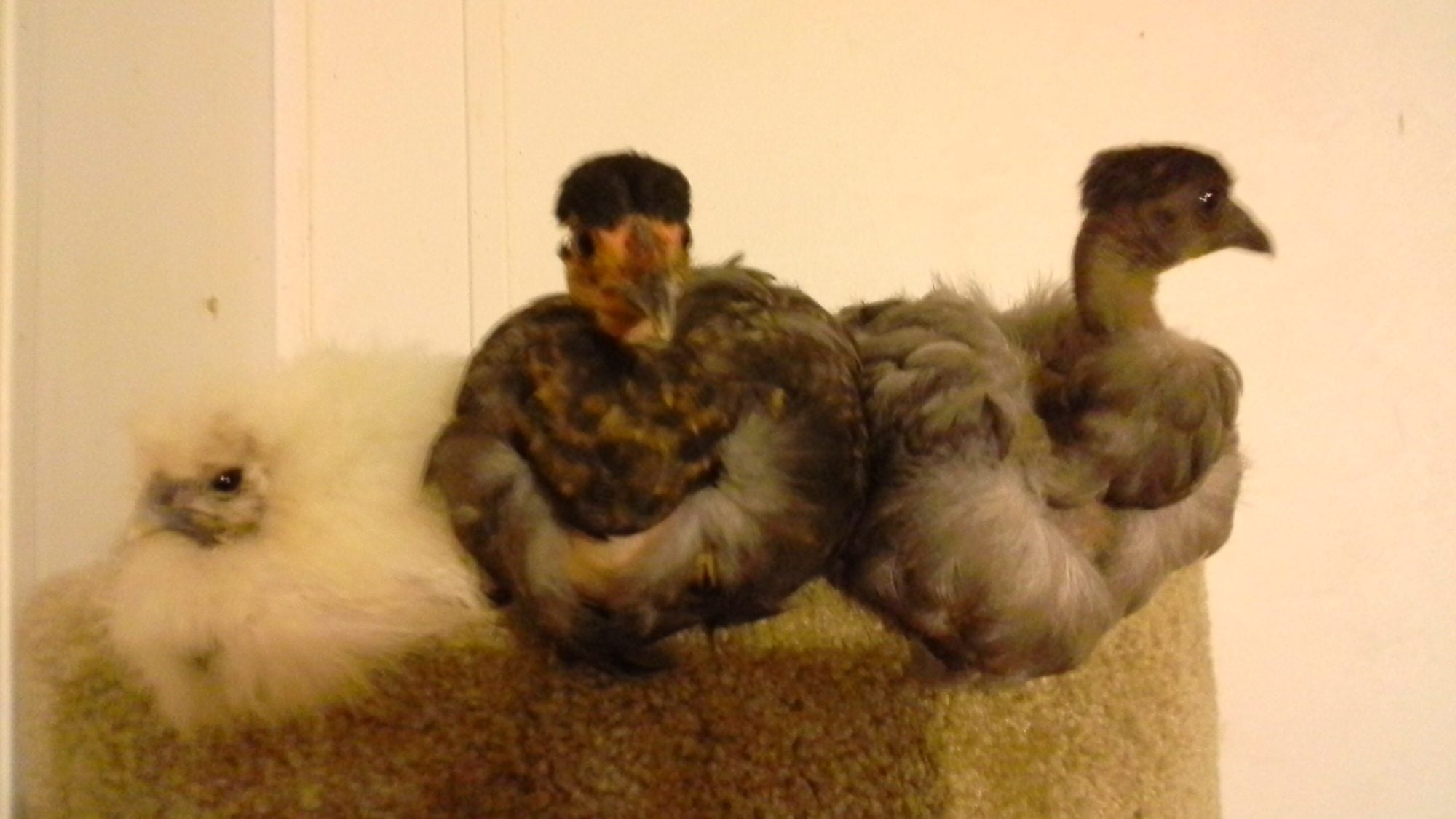 I use rolled oats in the FF instead of whole oats...someone said I'm spoiling my chickens. Compared to letting them sleep in the house, cat tree or not...I'm downright evil to mine!![]()