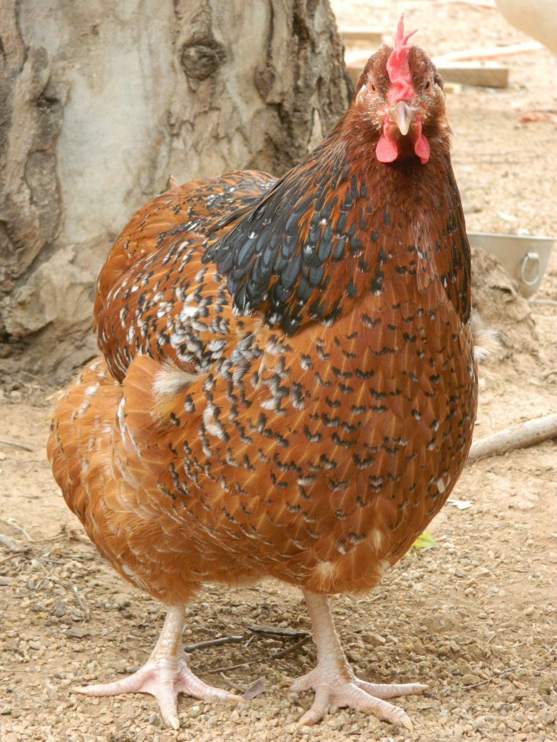 You should get some chicks or eggs from my friend Deb in Tucson. I just set her up with some chickens last year. I gave her this extra Naked Neck rooster that turned into this FABULOUS "Mille" guy. Do note that he is not very large - not "meat bird" type - he is more Leghorn size and weight, which are not known for being very "meaty". They are extremely heat tolerant, and good layers. But I do have some Sussex up here in Phoenix that would cross perfectly and add more bulk: If you are willing to work at it for a few generations you could create some lovely very large Mille birds that would be beautiful to look at and good for either eggs or meat production. The result would be very colorful, big beefy Naked Necks that anyone would love to own. But it would require some work to get there!!!