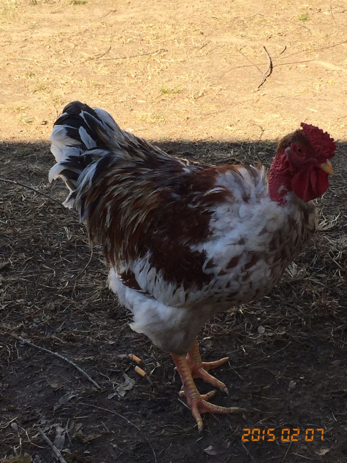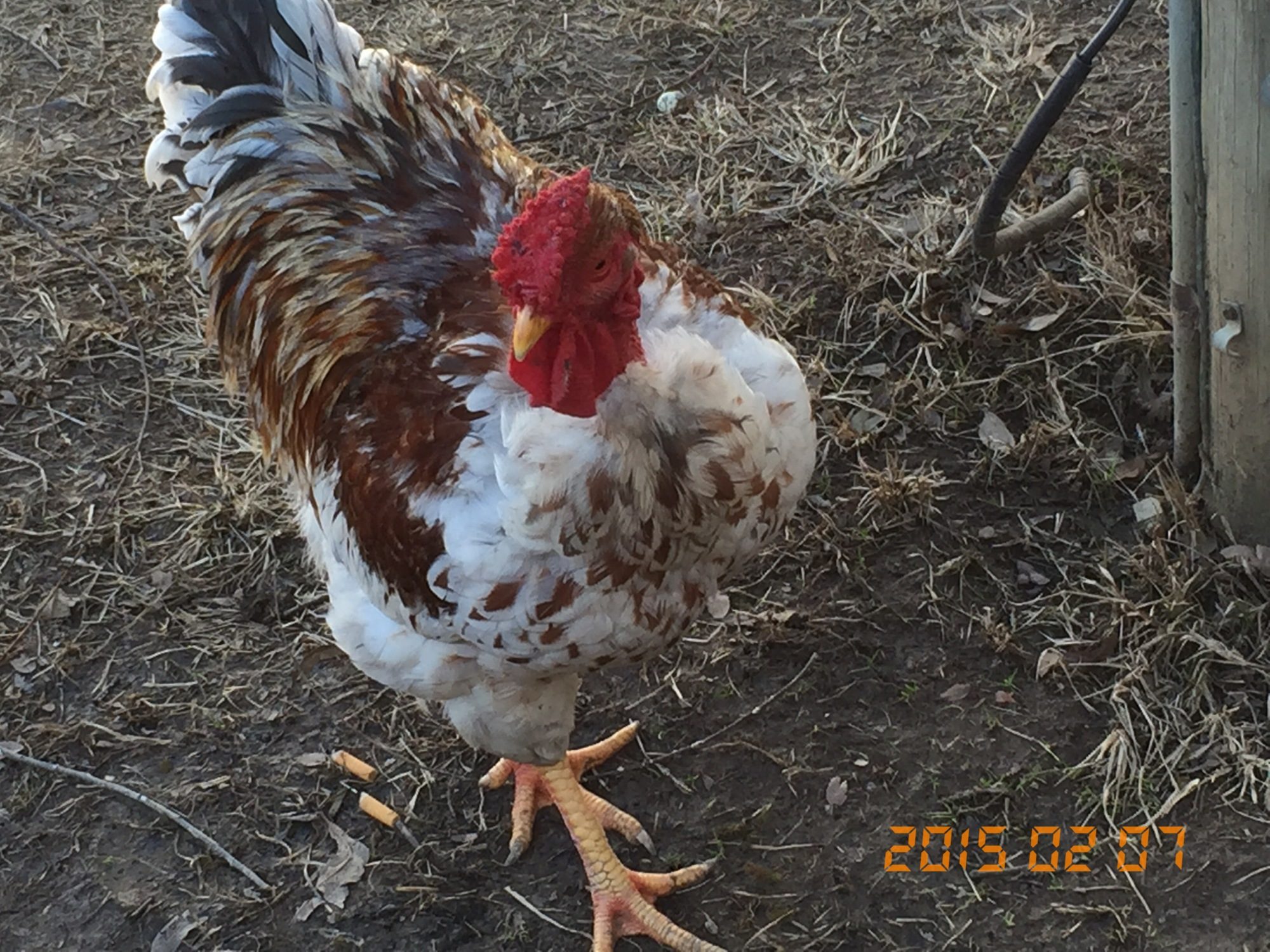 A very old breed and a large chicken. Very rare unless if you live in the North East one rooster can sell for around $2000 fully grown. I had most of my flock stolen after having people come in and look at them, so now we have a huge fence and 3 guard dogs for people to go through to get to them. That is what my rooster is in my picture he is pure legacy. Our youngest Cockerel is mostly red which I really don't want, however he has the black toe nails, and the smaller rose comb even smaller then his dads. Stormy weighs in at 28 pounds, that is about as big as I want any of them to get. Yellow to white eyelids, Black toenails, Yellow to white ear lobes, rose combs, and all girls have leopard spots on them or the partridge pattern. Their life span is way past most chickens, I believe it's due to the size. Many of them reach over 15 years old and still lay eggs daily.