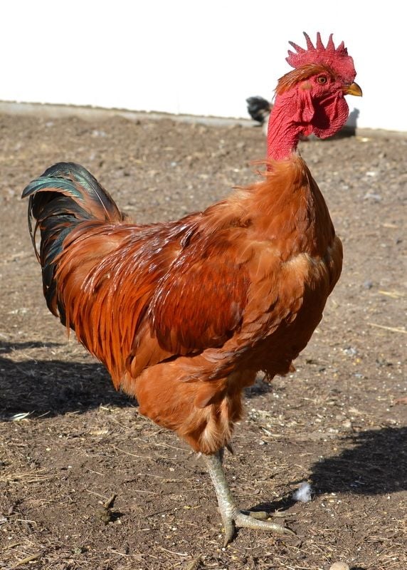 Very good looking red. What does he weigh? Guesstimate is even good. Do you run any Naked Neck hens with him?