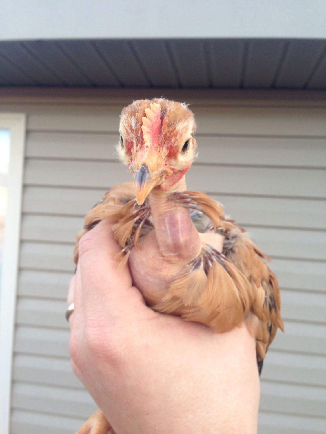 I'm the proud new mom of sextuplets! I'm guessing their birthday was around St. Patrick's day so they will have Irish names but until I know them a little more and can tell the same colored ones apart better I'm not going to name them. Only one has a completely naked neck, I picked the least feathered necked ones I could find. The lady at the feed store thought I was a bit crazy for looking so closely at every one they had but she also said she wished more people were as excited about them as I was. I have no idea what colors they'll be other than the black ones of course but I don't care, I'm just so happy and also nervous since they are so tiny and fragile!