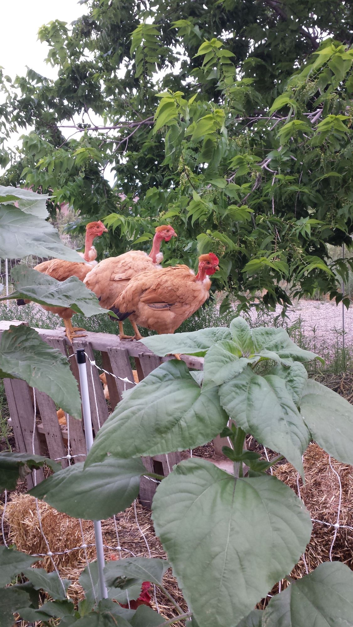 I had posted a while back asking about the gender of my NNs. All three were indeed pullets. They are sweet, goofy birds and do indeed seem to be tolerating the heat very well. They're about 16 weeks and one of them will be laying soon with the others not far behind. Here is a pic I took tonight -
