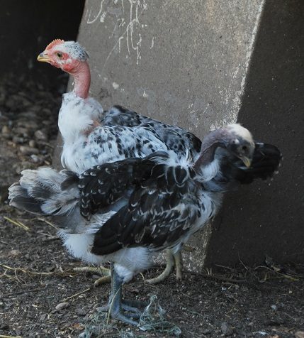 Just hatched! Turken/jersey giant or silkie cross. I'm assuming jersey giant because of the red skin. :*)