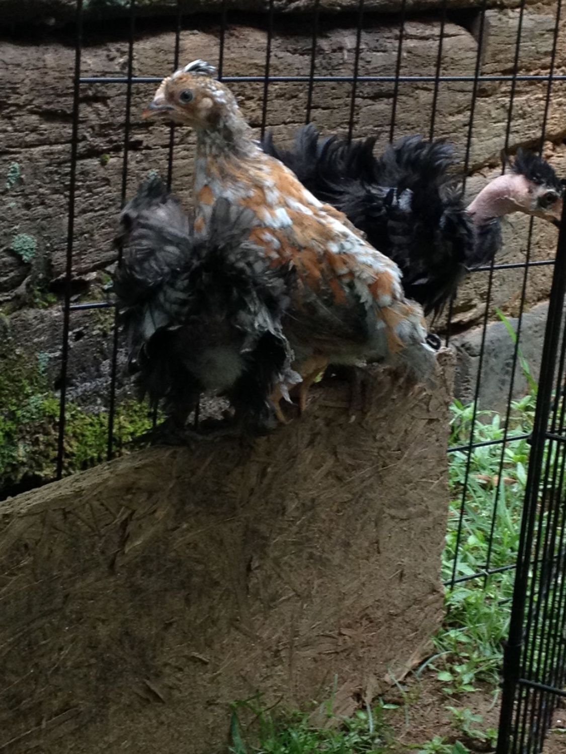 One of my SF hens. The one in the middle on the bottom is a male and I sold him yesterday, and I have another female that has his brighter coloring. My SF roo is the same color as the little guy. So if any of my NN hens have some funky white spots on them, It may have the mottling gene and would turn out fun colored?