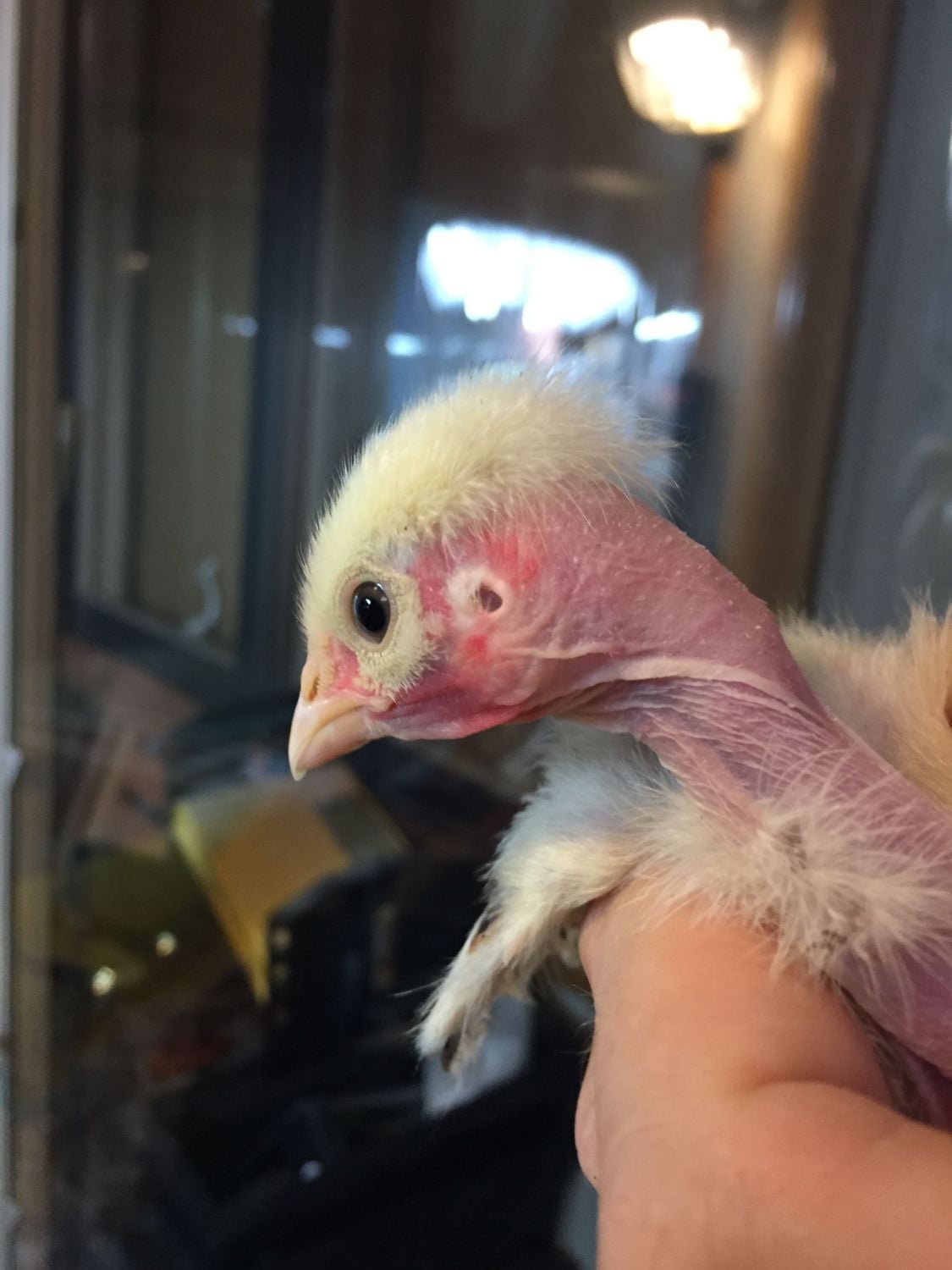 Anyway, I have one Naked Neck boy (NN phenotype, clearly male to my eye) who is a TANK! He is 6.5 oz (0.4 lbs) at 2 weeks old! It was like lifting a brick, I swear, and he almost beat his way out of my hands... He's almost twice the size of the littlest ones, and a full ounce heavier than the second largest chick (another Nn male). My question is - he's starting to turn red in the face - I saw a red spot by his ear last night, but thought it was a boo-boo. Now it's his whole face. I just wanted to double check if this is normal/expected in Naked Necks, vs. some sort of lesion/rash. (The next largest one is just starting to have this as well, barely.)