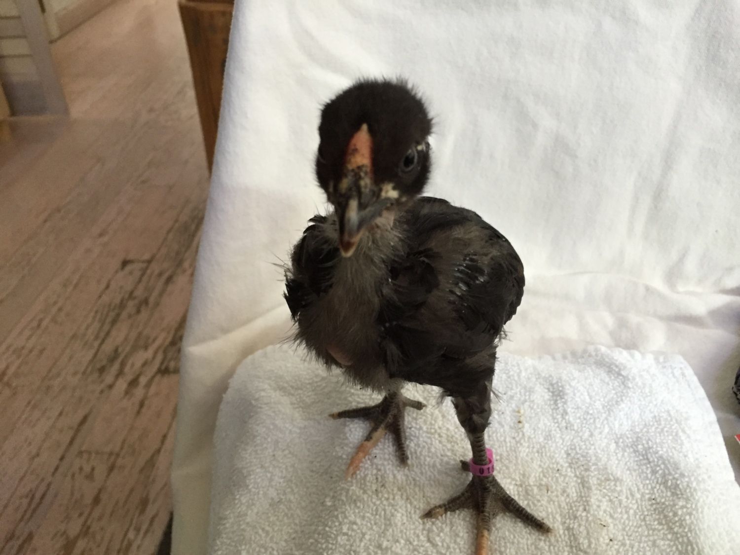 I got photos of the chick with the different comb (I am very unpopular now). I have zero in-person experience with non-single combs, but I think it's a rose comb from example photos I've looked up. It's only become obviously different in the last several days.