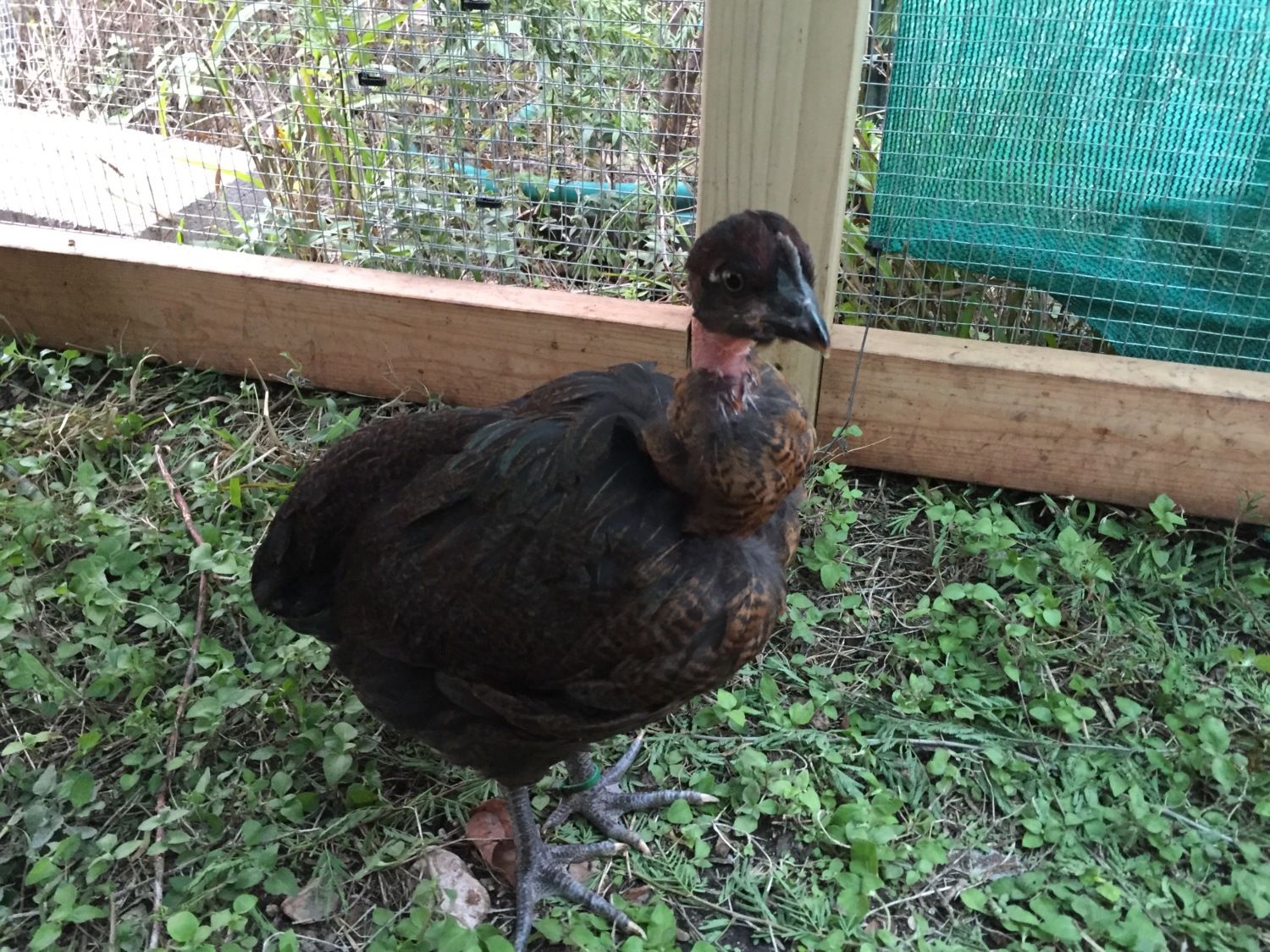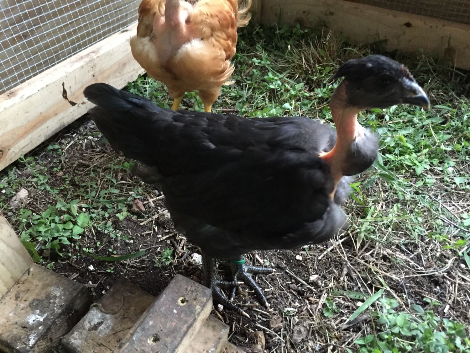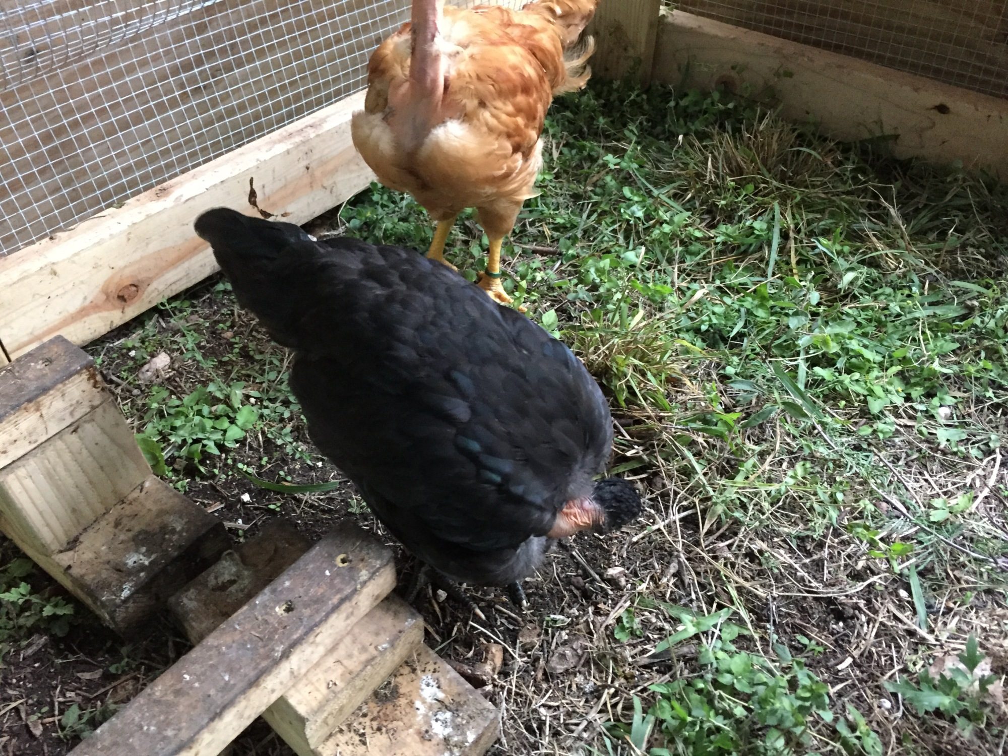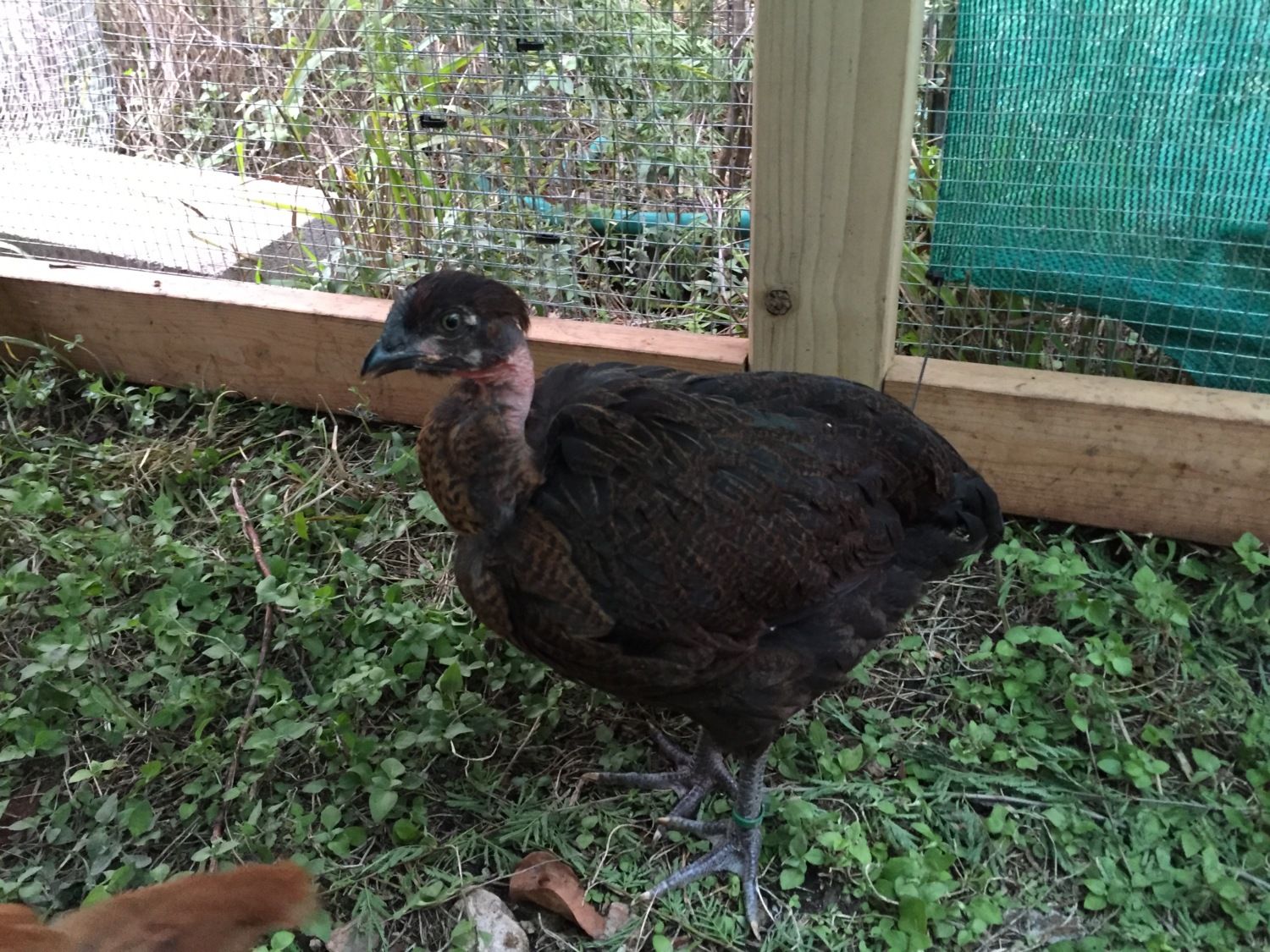 OK, the real photos (the ones I could get). First the black ones, pullet and then rose comb: