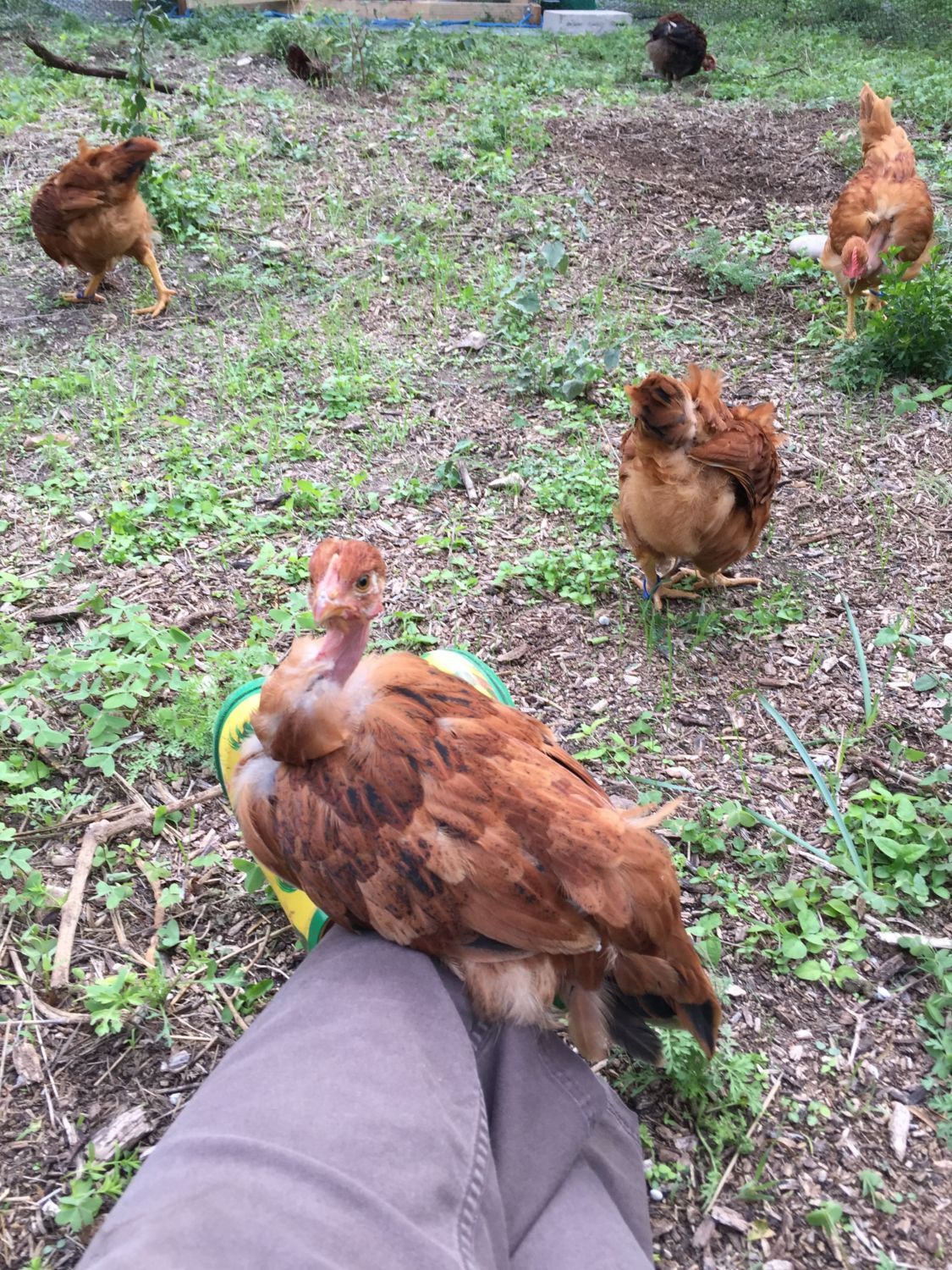 OK, so, for better or for worse, I have decided not to weigh this week. Too stressful for them with the leg band change and then new roaming outside the tractor. (I welcome suggestions for weighing birds accurately once they get this big.)