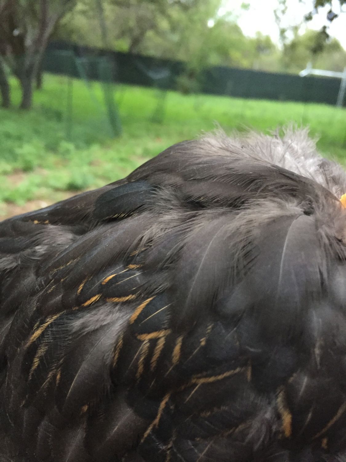 That boy's color is a very typical result of either solid black crossed with anything colored or black being present in a mixed color flock. If you like this color, breed him as it;s a dominant color to get more.