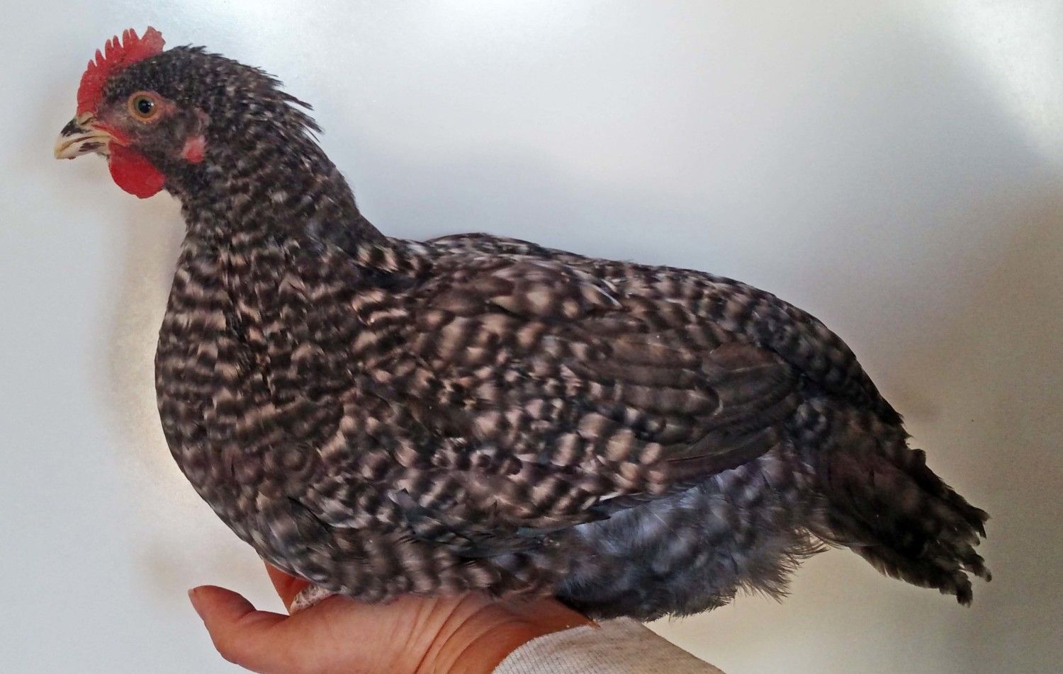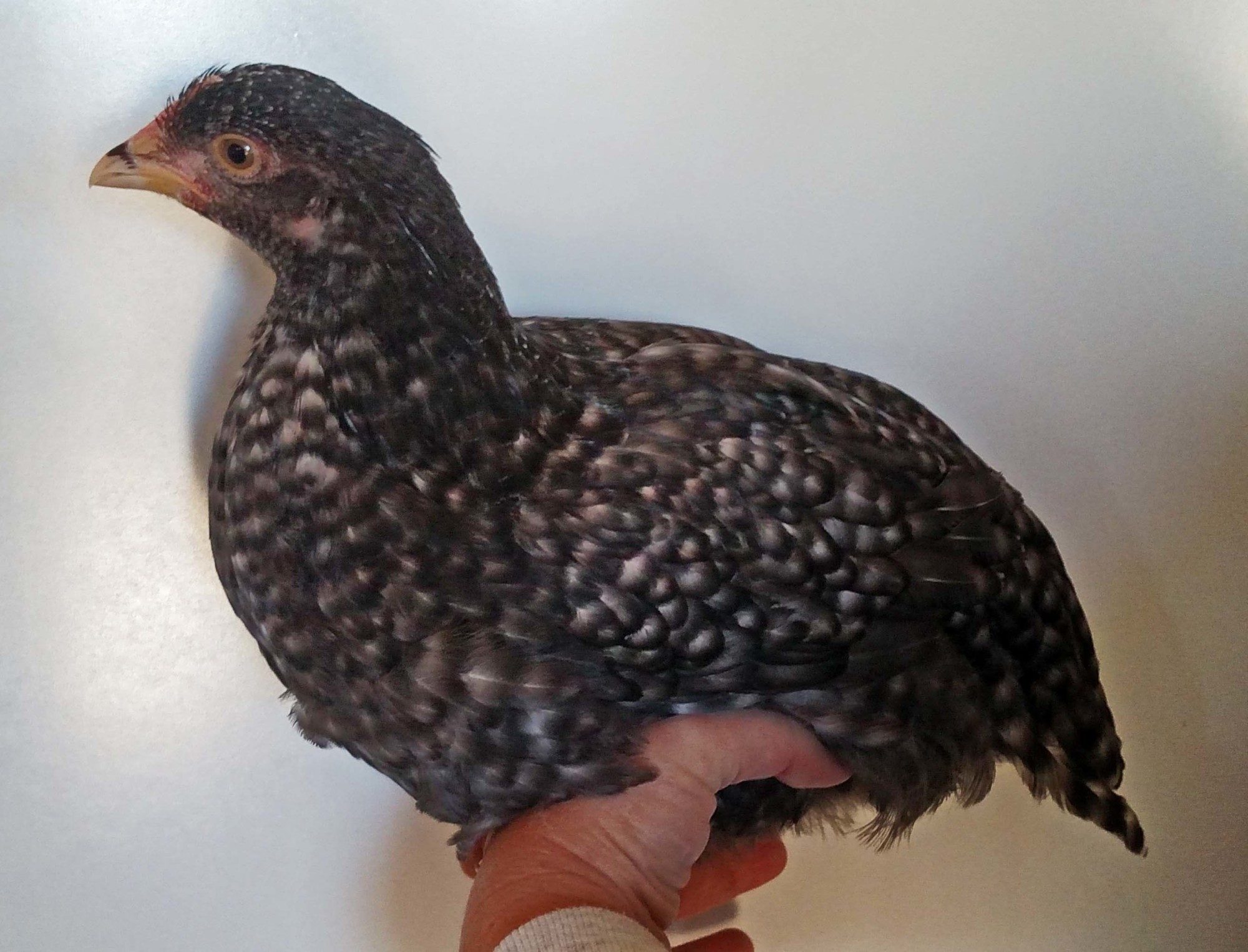 With the black girls, they will come out black chicks with white head spot and grow up b/w patterned but most if not all will eventually show brown or red on their heads, necks plus breasts on the girls and on the back/saddles on the boys. The genetic reason for this is because the black feather is dominant.. but for other reasons, color leakage is to be expected, it's the amount that is the unknown. Could be barely any or quite a lot.
