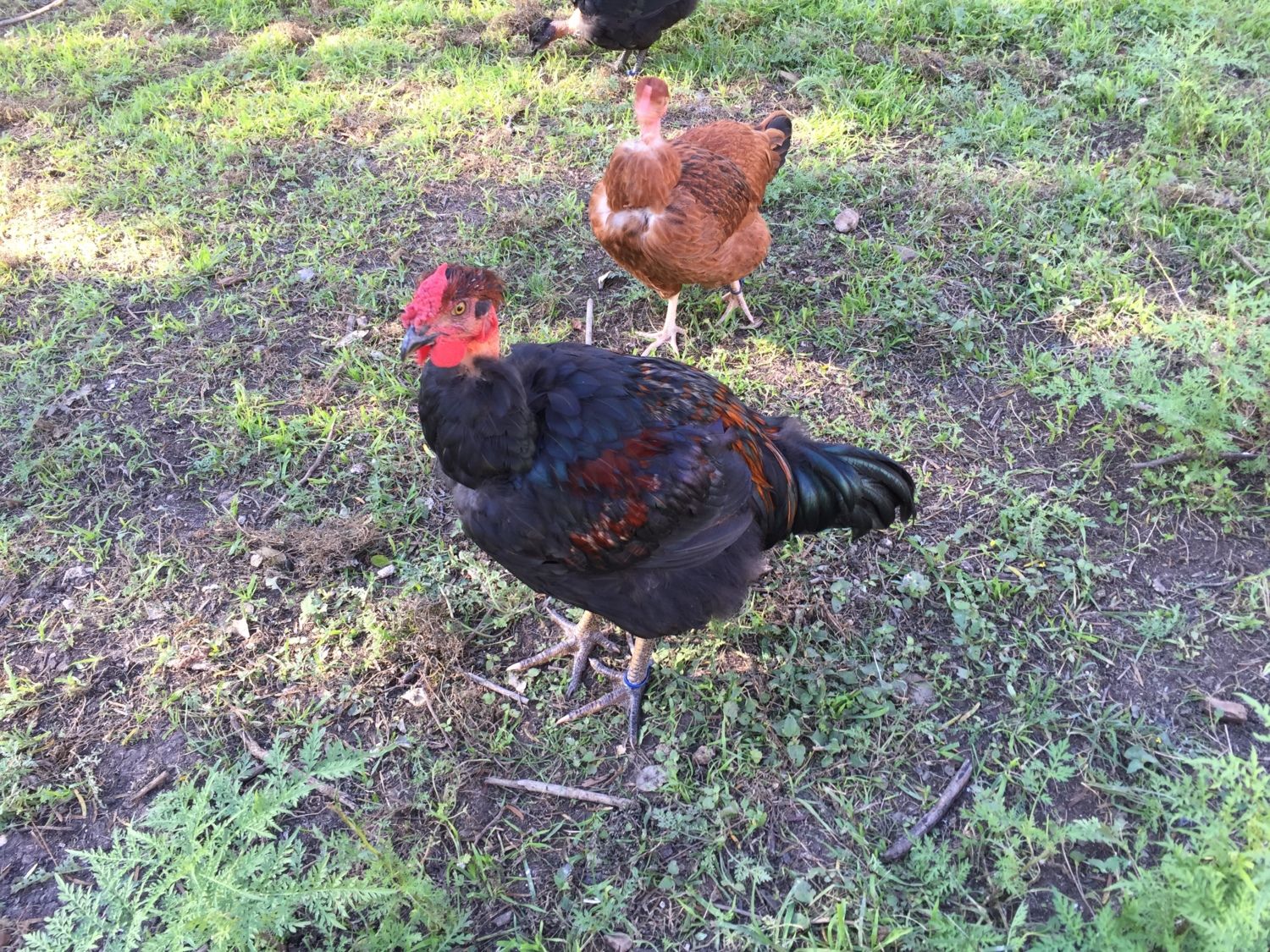 It's been a while since I posted photos, and it was a lovely day today, so here they are. 14.5 weeks. It's been fun to watch the boys' feathering evolve. Oh, and I'm afraid Bane name is now Snape. It's been coming for a while - it just fits his countenance better. (Also, lead CL cockerel is Dumbledore, and they do call and response every morning... Seems right.)