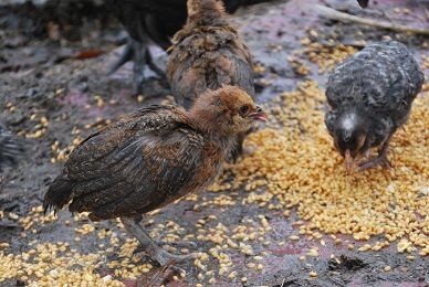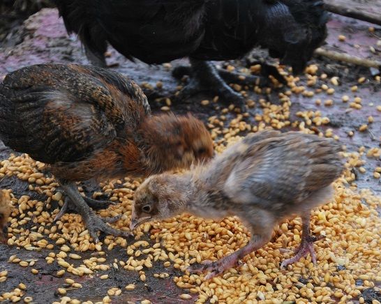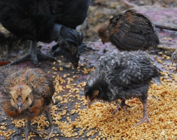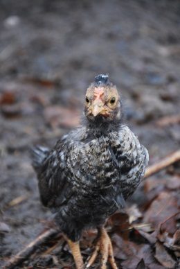 Trinity, the largest pullet, also the only dark one who has persisted as true solid black into adulthood (no red/brown anywhere):