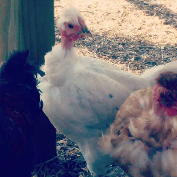 Tugboat, who used to be the smaller rooster, exploded and piled on HELLACIOUS AMOUNTS OF MEAT. He is a beefcake. His neck is twice as thick as Werewolf, the other rooster, who now seems like a scrawny twig in comparison. In the last couple days, I started seeing them breed with one of my favorite hens Casper. She's oddly patient with the wobbly virgins. Werewolf is still a big sweetheart, Tugboat is a bit braver than he used to be but respectful of me so far. I'm still a little worried I'll suddenly see an aggressive rooster burst out of them but they both mind me very well for now. They are both crow collared and it is working fantastically! 0 neighbor complaints, actually much the opposite! Everyone around is in love with them.