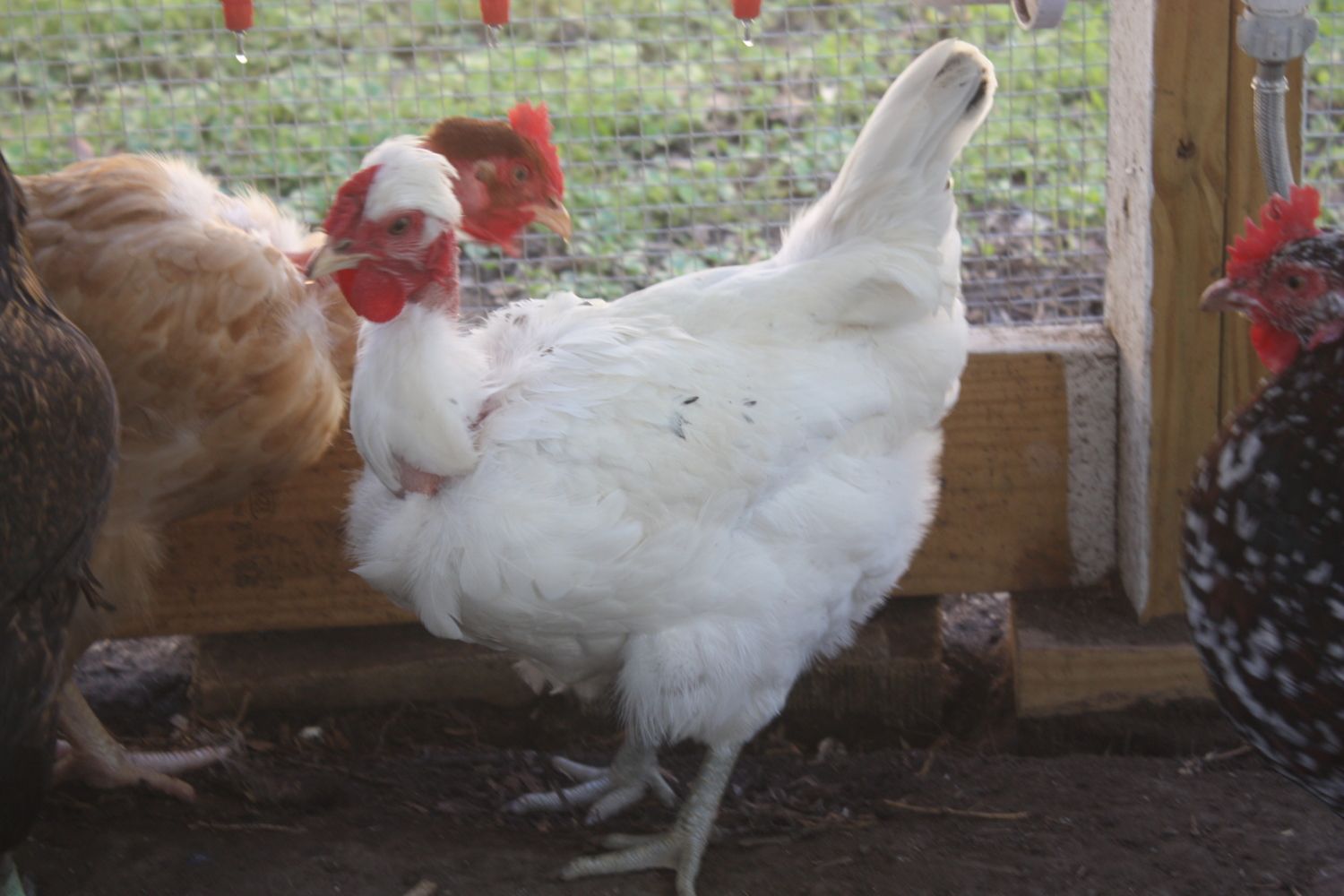 Marshmallow is so beautiful! She is laying now, too, along with her sister Hamster... and the eggs are coming out w/bulls eyes! So once my incubator empties out later this week I know what eggs I'm setting. Fingers crossed for a scaleless, but I'd be happy with just some more hens.