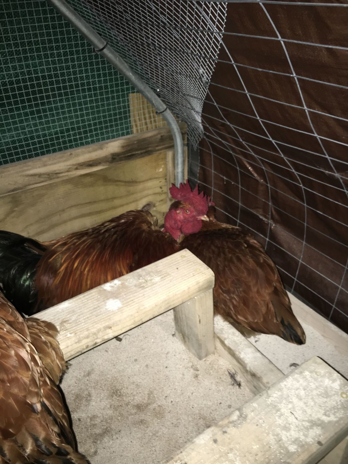 this behavior is why I have roosts spaced far apart(as in 4-6 feet or more) and at very different levels(I don't do the ladder style roosts but they could work). I noticed your roosts in the recent pic look like same height and real close, wonder if that is not helping with night time pecking? I quite understand space issues, this is mainly for perhaps giving ideas either for alternations or doing roosts differently in future pens.